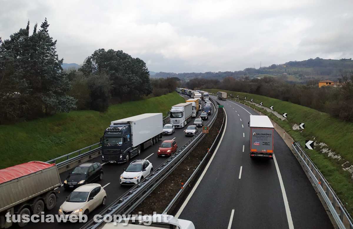 Orte – Scontro tra due camion e un’auto sull’A1, 7 chilometri di coda tra Orte e Ponzano Romano.