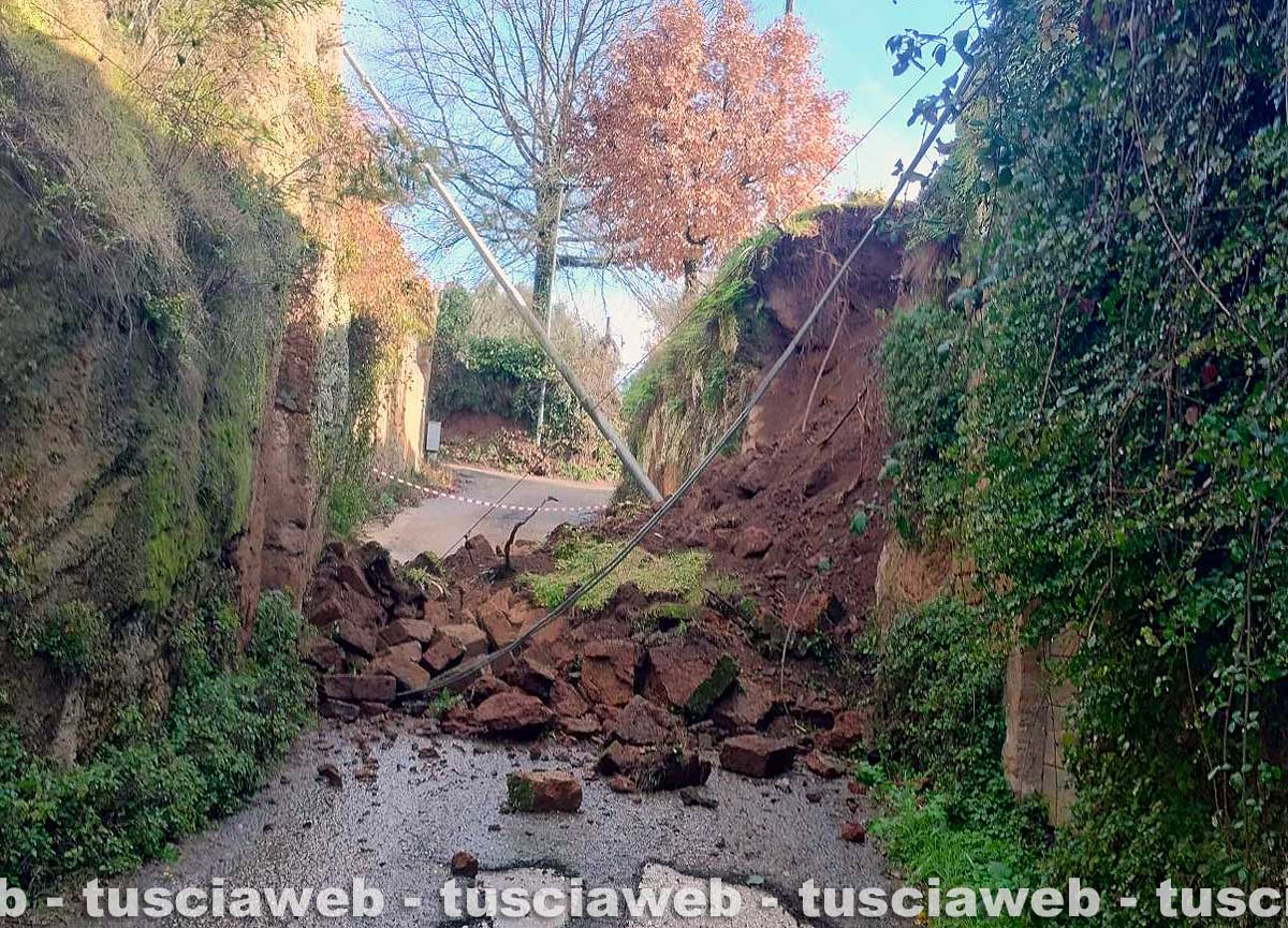 Corchiano – Frana a Corchiano, chiusa la strada per la contrada Vallone. Viabilità interdetta per motivi di sicurezza: accesso consentito solo attraverso un percorso alternativo. Si passa da piazza Pina Piovani.