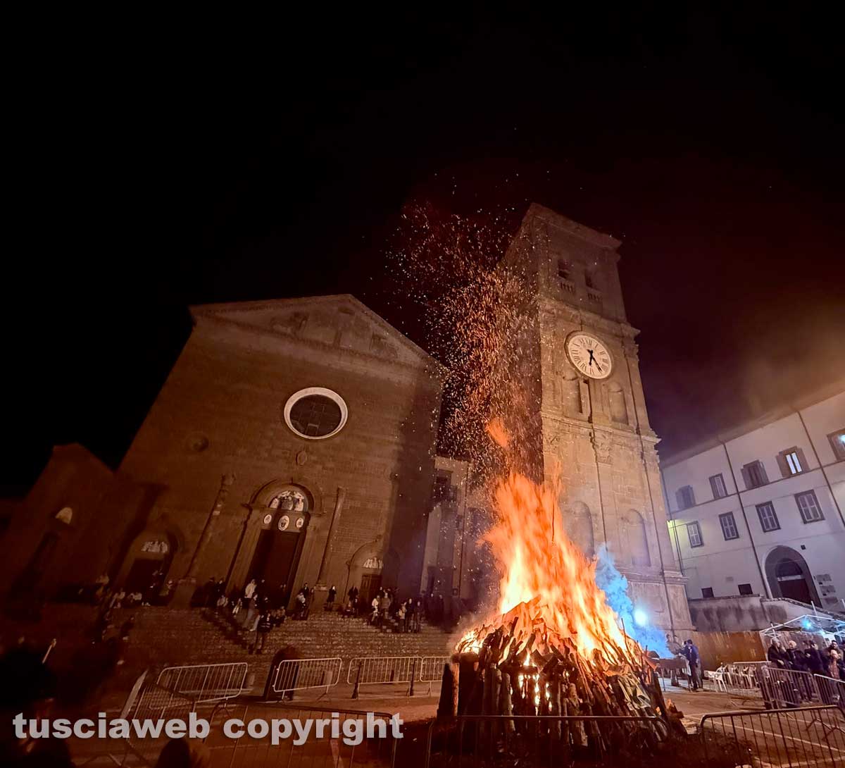 Viterbo – “Il fuoco di Sant’Antonio ci ricorda di essere luce, è un simbolo potente di calore purificazione e presenza”. Il parroco del borgo della Quercia all’accensione del focarone.