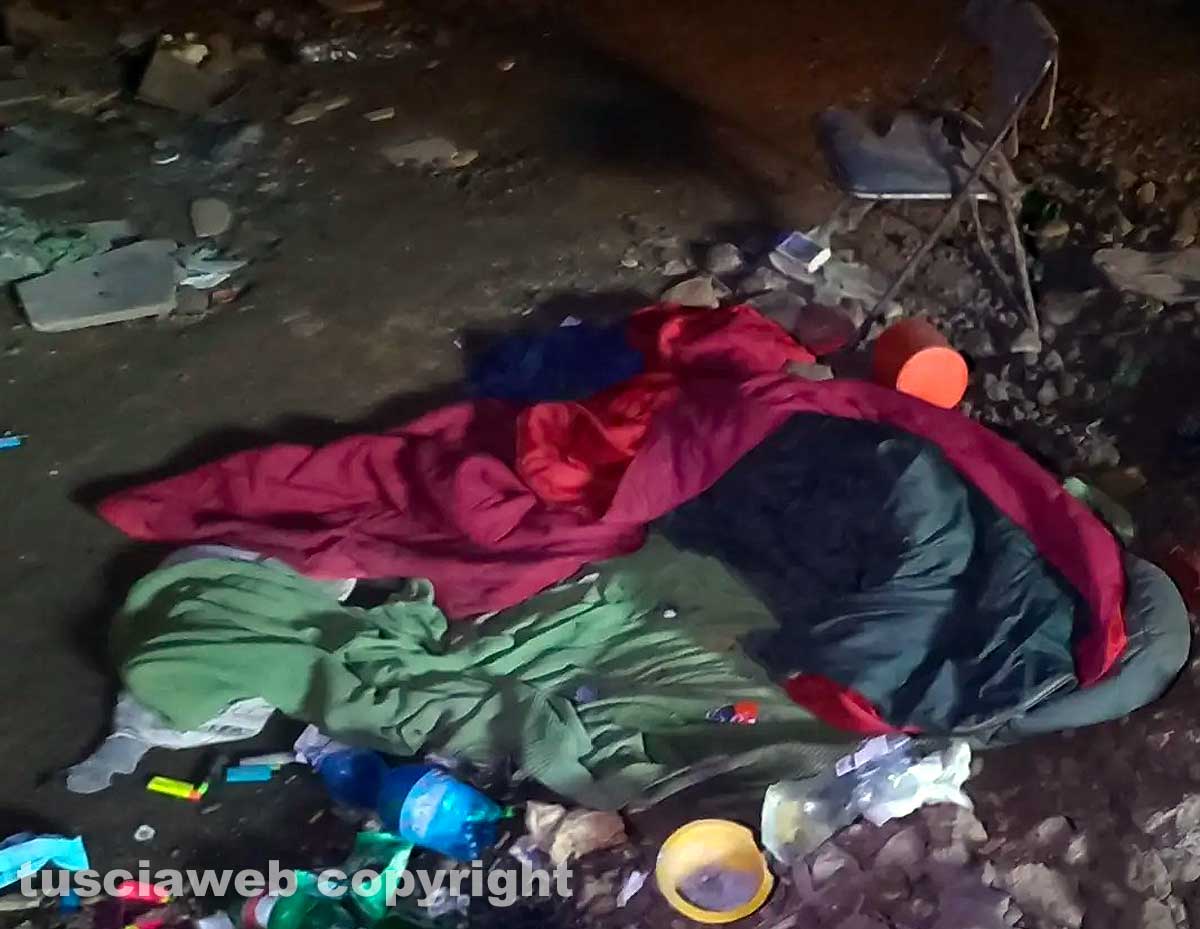 Nella foto: Capranica - Uomo senza fissa dimora vive in una grotta, dorme in un sacco a pelo e accende fuochi per cucinare e riscaldarsi