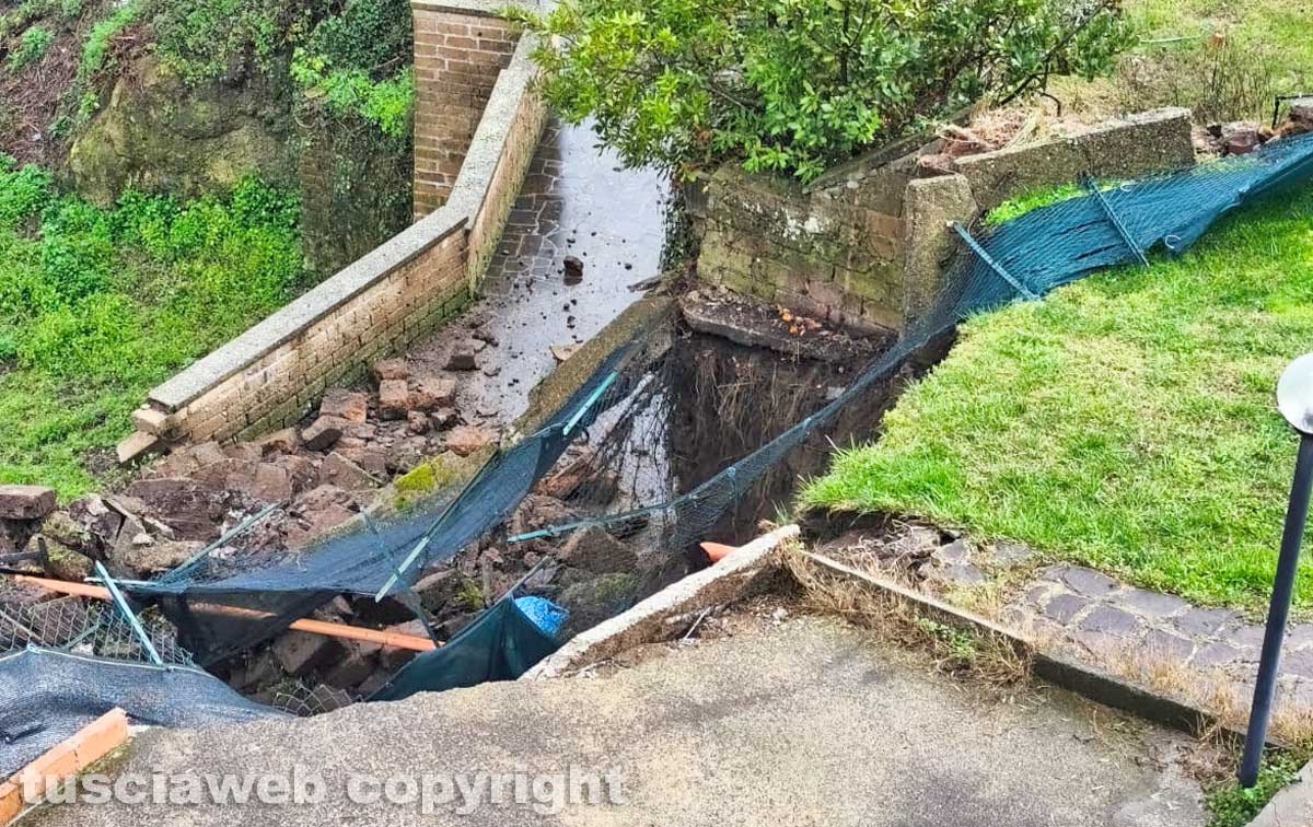 Nella foto: Ronciglione - Ampia frana su via delle Cartiere