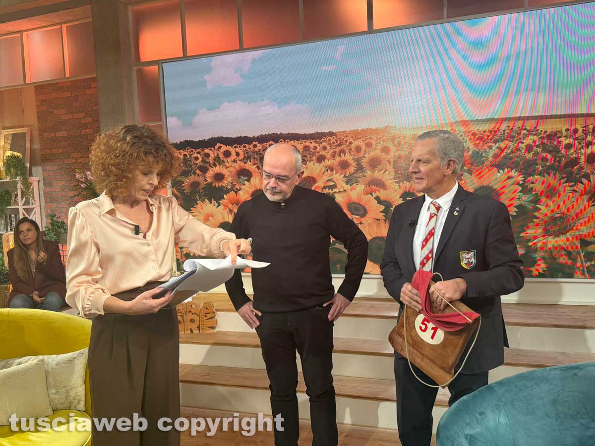 18 febbraio, 2026Media - Massimo Mecarini, presidente del Sodalizio dei facchini, con il vicario episcopale don Massimiliano Balsi ospite della trasmissione ‘L’ora solare’ condotta da Paola Saluzzi - Il 6 marzo su Tv 2000 puntata speciale su santa Rosa