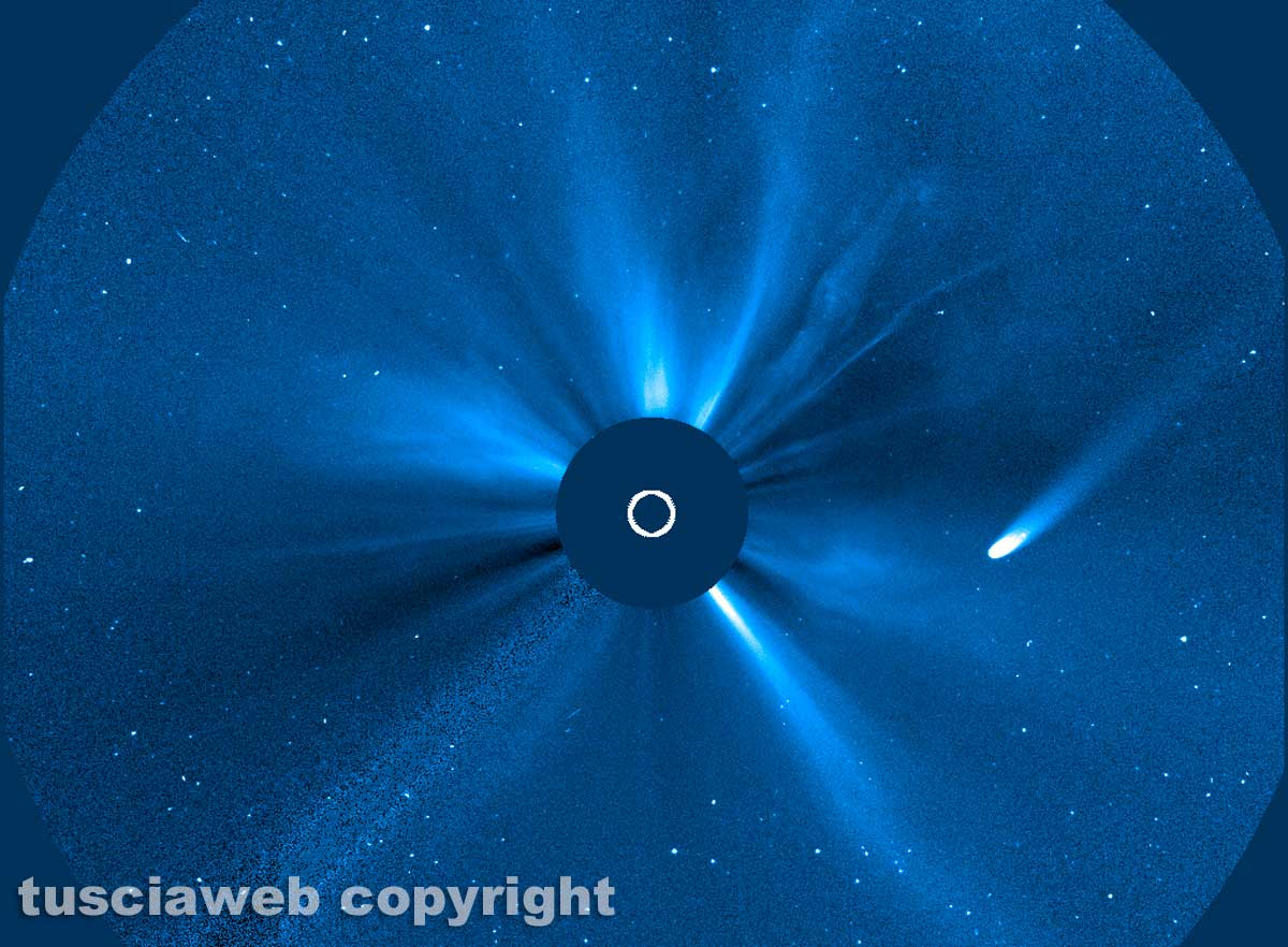 Soriano nel Cimino – “La cometa Panstarrs R3 nel campo solare”. I coronagrafi monitorano la corona solare utilizzando un sistema ottico per creare, di fatto, un’eclissi solare artificiale.