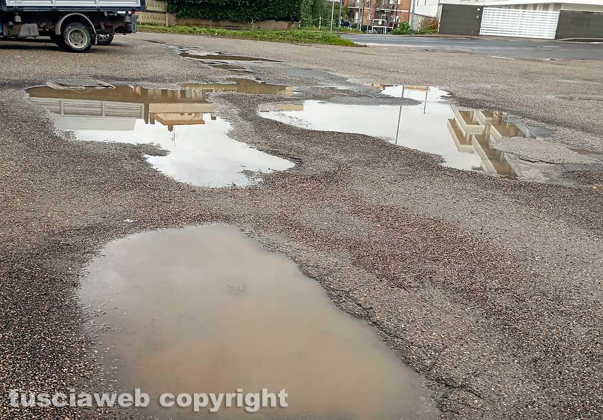 Nella foto: Viterbo - Grandi buche in largo Monti Cimini