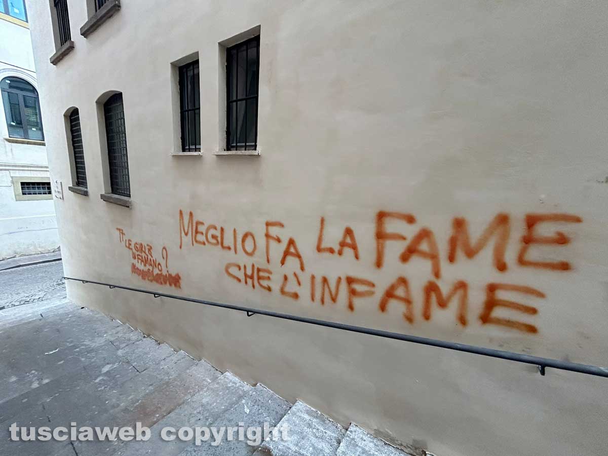 La città allo sbando - Viterbo – Scritte con bombolette sulle mura della Tecchi - Perché non vengono usate le telecamere per individuare i vandali? - La sindaca Frontini perché non fa controllare i territori? - FOTO