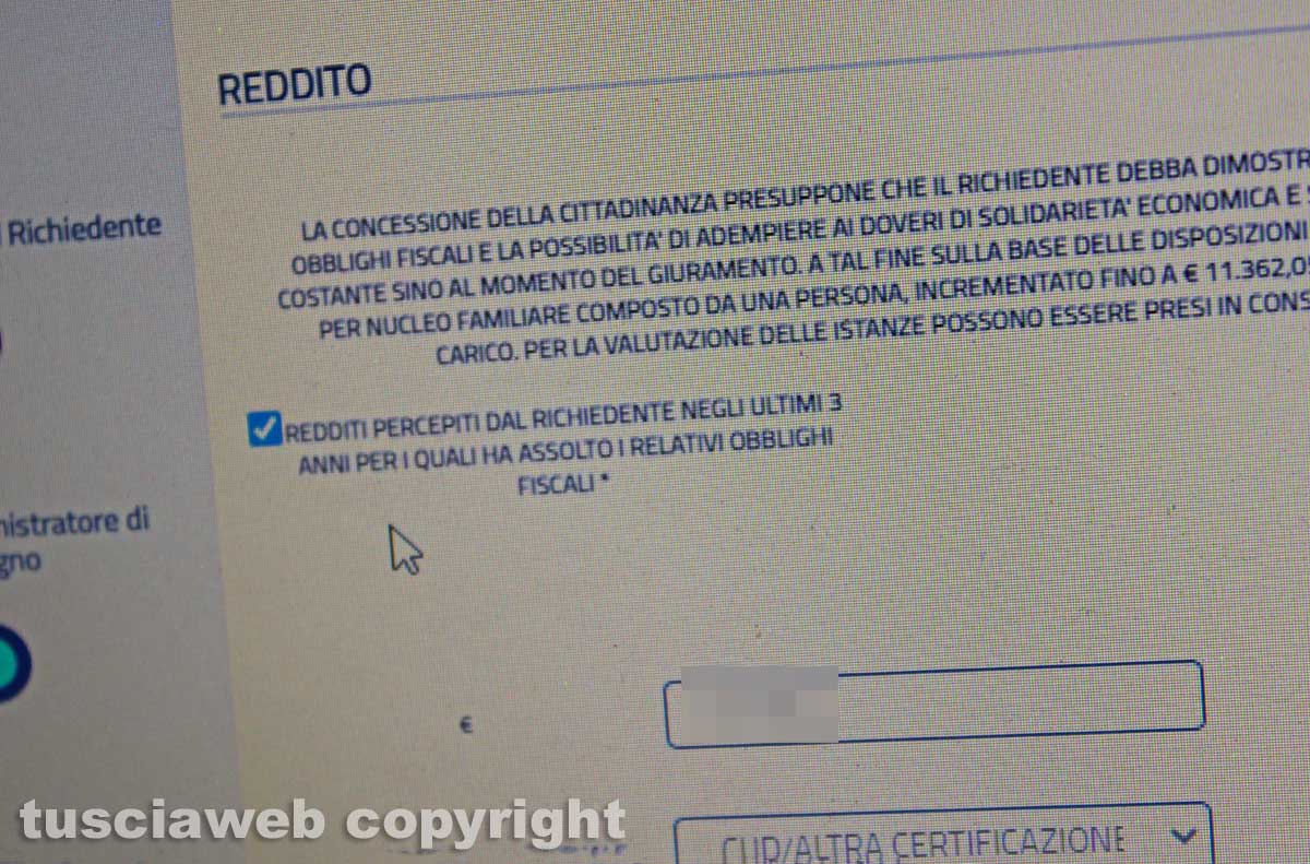 Domanda di cittadinanza on line – La parte riguardante i redditi