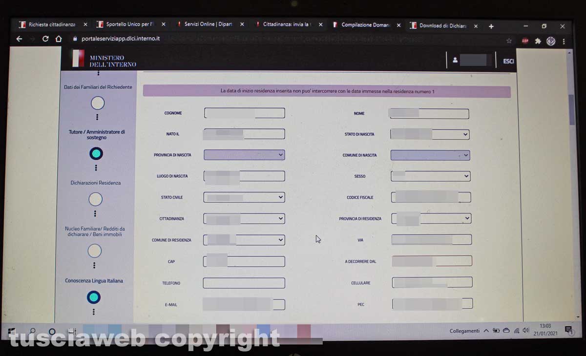 Viterbo – E’ appena nato e già funziona male. In ballo, però, ci sono i diritti. Anzi, il più importante di tutti. Il diritto alla cittadinanza. Con gente, cosiddetta straniera, che aspetta anche da oltre un decennio. Tra continui rinvii, azzeccagarbugli e lunghe, e a dir poco costose, procedure burocratiche. A quanto pare, però, queste persone, in carne, ossa e perenni sale d’attesa, dovranno ancora aspettare. Perché il portale del ministero dell’interno, appena sfornato dal governo, non funziona come dovrebbe. Con il rischio che diversi richiedenti diritto di cittadinanza non possano inoltrare la domanda prima che gli scadano i certificati previsti per poterla spedire.