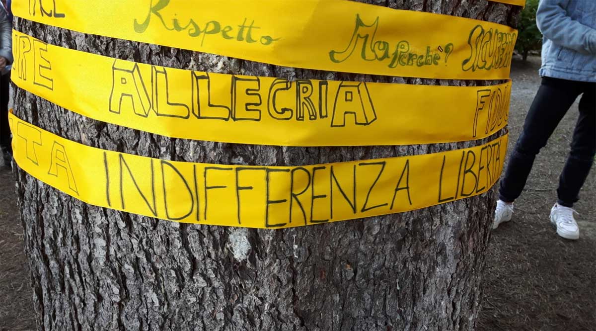 Il 27 gennaio i rappresentanti delle classi terze e la dirigente hanno simbolicamente “vestito” con un lungo nastro giallo, su cui erano state riportate le “parole della memoria” l’albero all’ingresso della sede centrale: il futuro ha bisogno di radici.