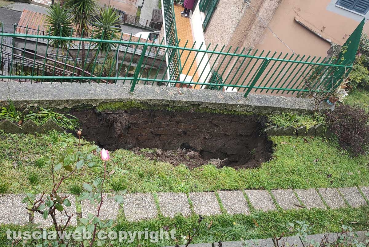 Domenica di pioggia battente sulla provincia di Viterbo. A Vignanello, in via della Vittoria, è crollata una parte di un muro di contenimento per via della troppa acqua che è penetrata nel terreno.