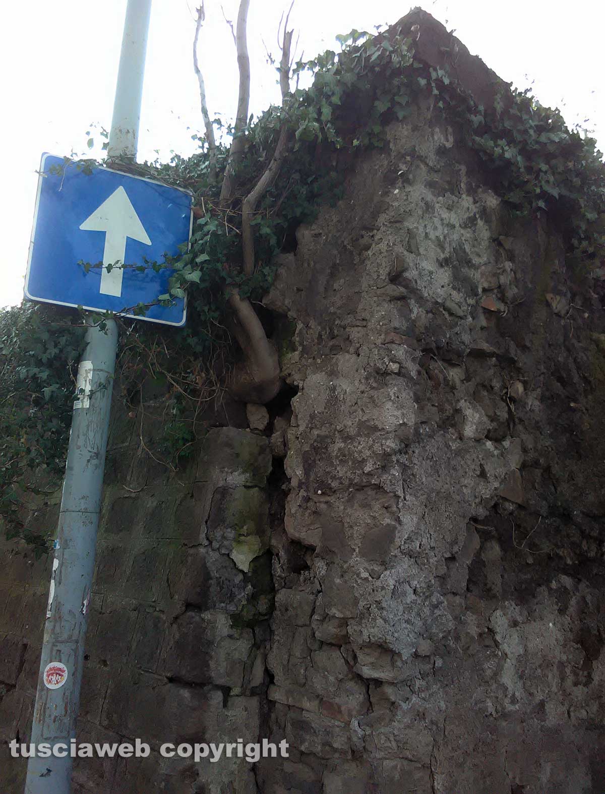 Su questo muro negli anni passati doveva essere fatta manutenzione, in particolare rimuovendo quella pianta spoglia le cui radici premono sul muro, causando situazioni di pericolo. È ora di provvedere quanto prima, perché non si può continuare ad aspettare a lungo.