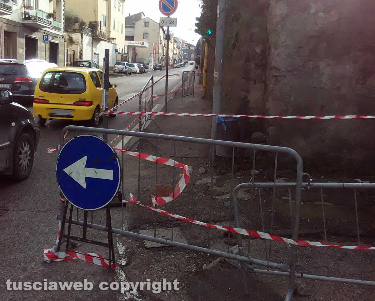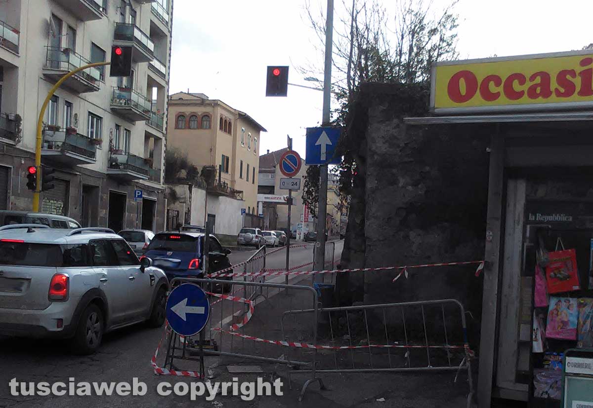 Viterbo – Riceviamo e pubblichiamo – Alle spalle dell’edicola in via della Palazzina c’è il muro che desta pericolo e preoccupazione all’edicola stessa e ai passanti.