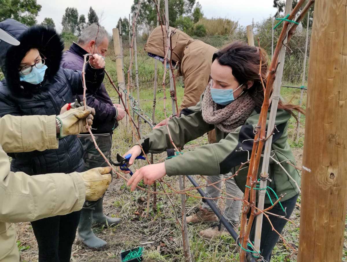 Gli alunni della classe quinta coadiuvati da Aldo Spada e dai docenti del corso, suddivisi in due gruppi e in assoluta sicurezza nelle giornate del 14 e 15 dicembre hanno impostato quelle che saranno le forme definitive di allevamento dei diversi vitigni presenti.