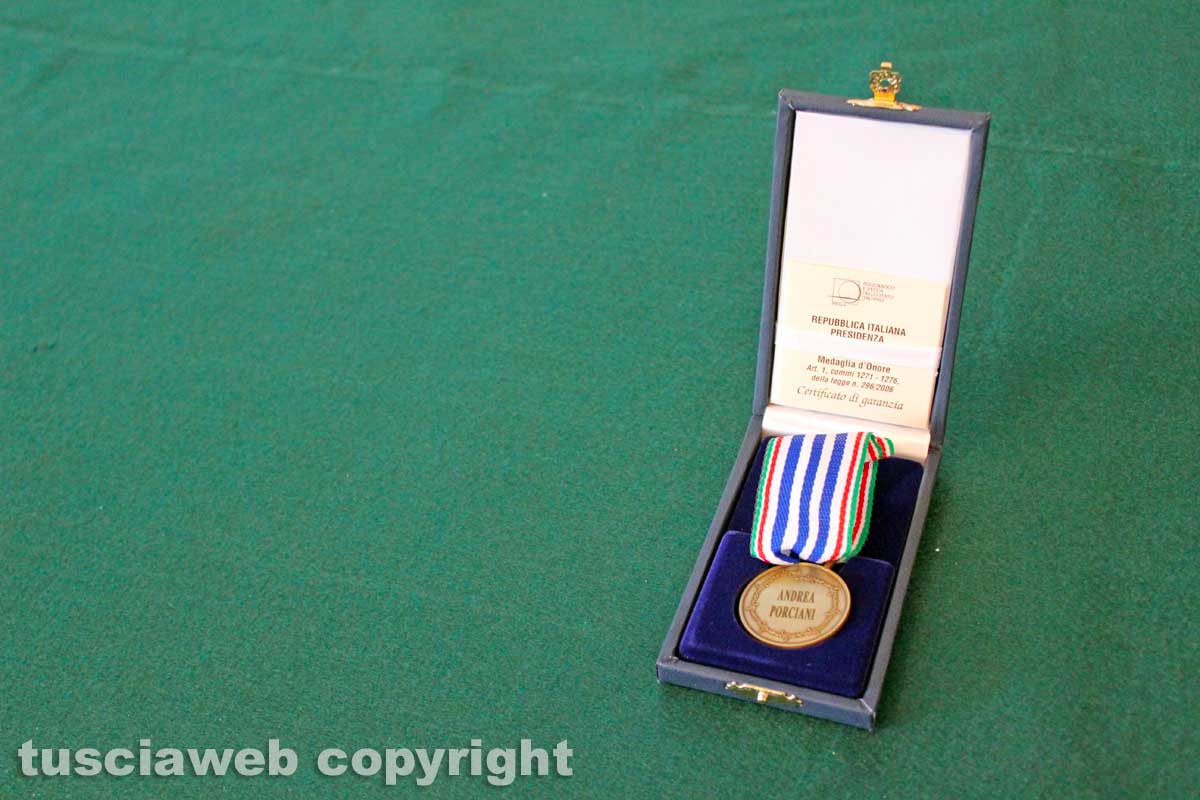 Le medaglie sono state conferite a Francesco Basile, Alessandro Cecchini, Domenico Cocucci, Irenio Pennesi e Andrea Porciani. Tutti internati militari. Nati o che hanno lavorato nella Tuscia durante l’occupazione nazista. Tutti deportati nei campi di concentramento tra il 1943 e il 1945. Persone che oggi non ci sono più. A ritirare le medaglie figli, figlie e nipoti.