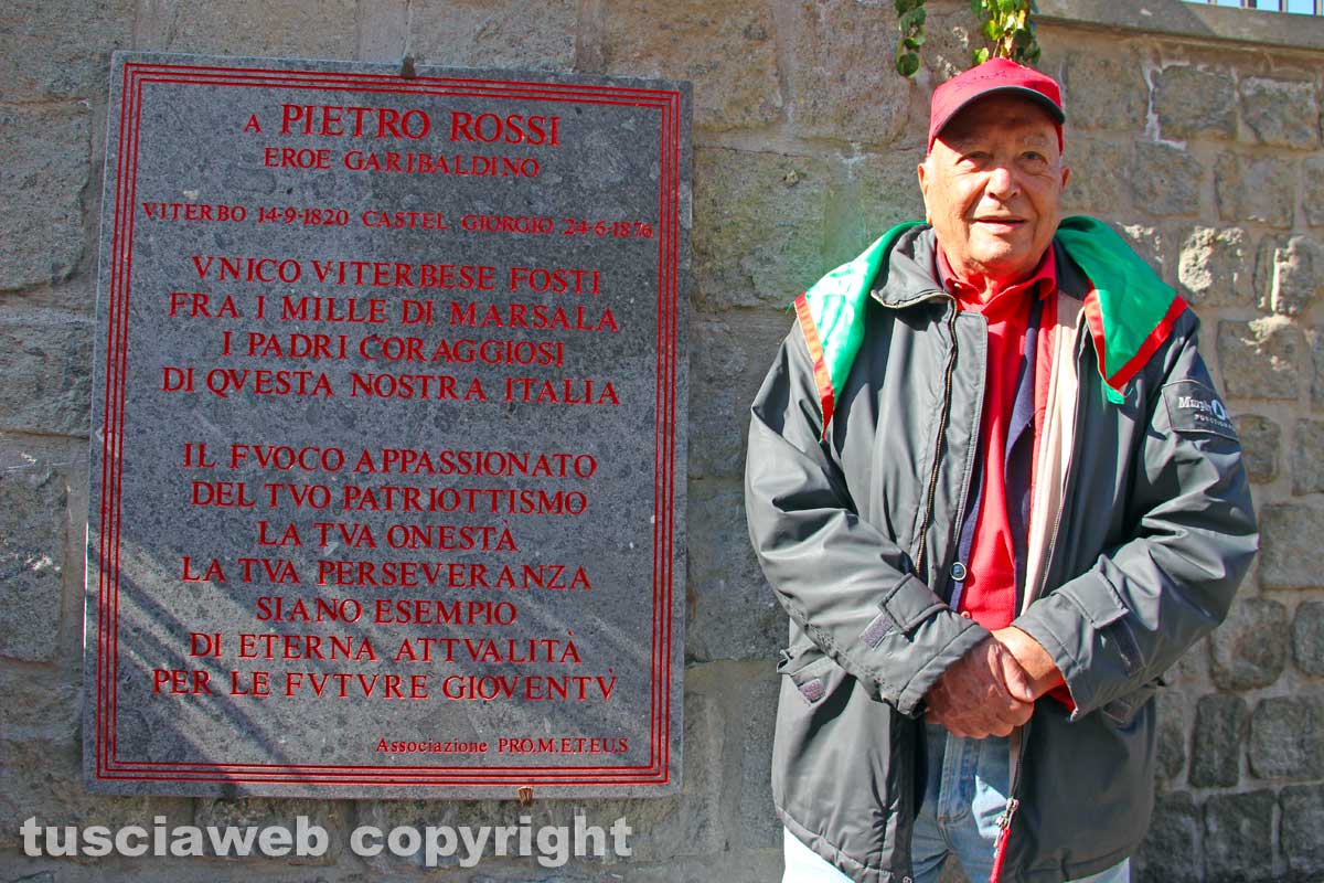 Viterbo – L’epigrafe dedicata a Pietro Rossi in piazza Unità d’Italia con il pronipote di Pietro, Aldo