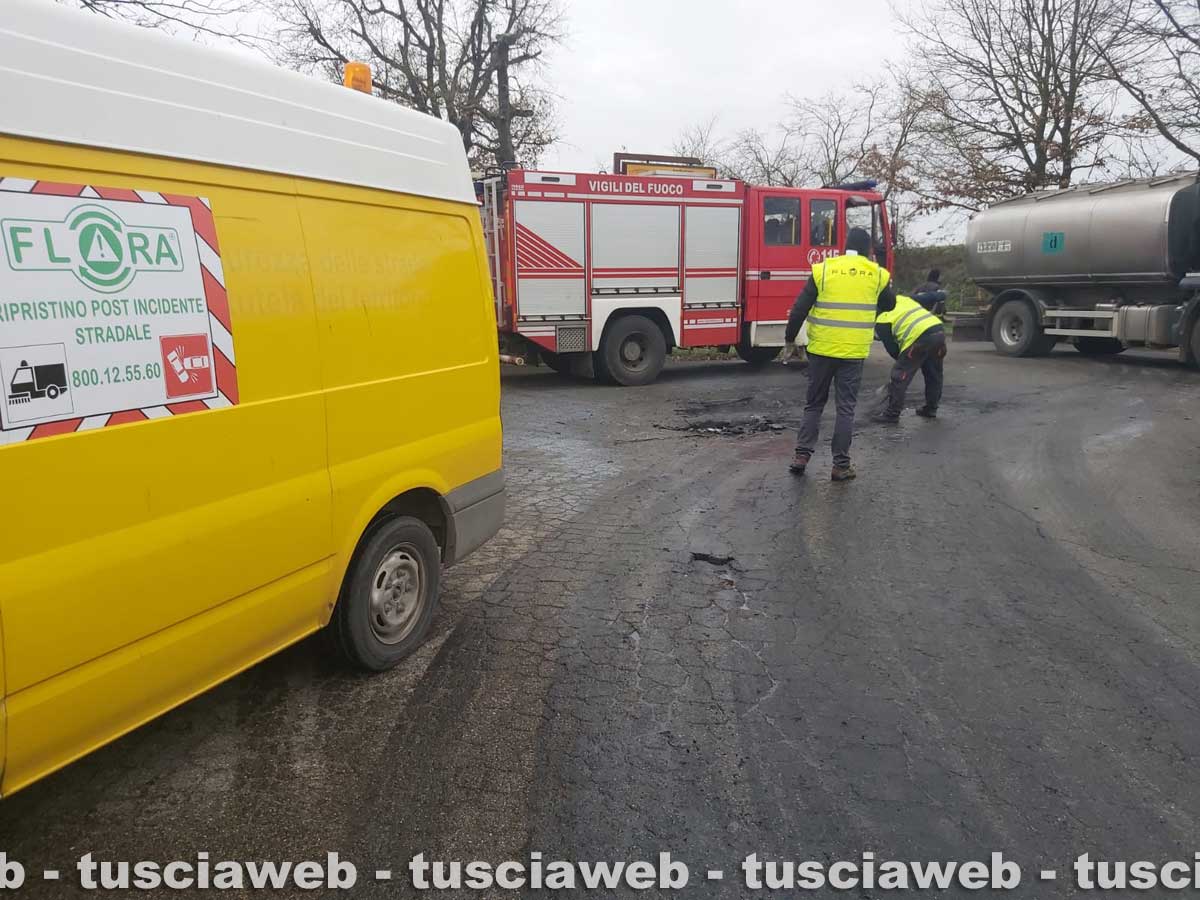 Viterbo - Traffico bloccato - Sul posto polizia locale, carabinieri e vigili del fuoco - FOTO