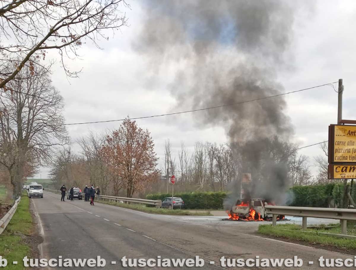 Viterbo – Auto in fiamme sulla strada Cassia Nord a Viterbo.
