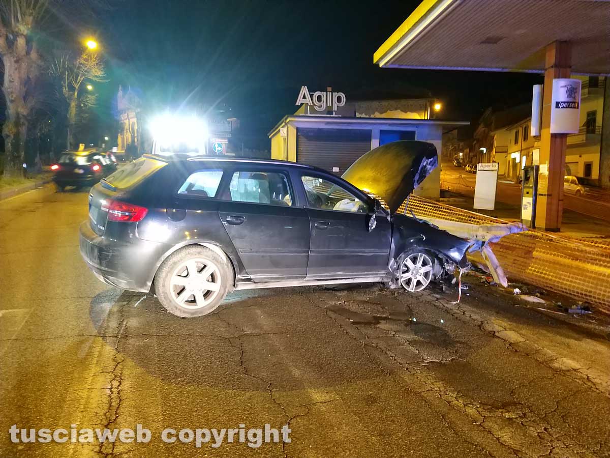 Montefiascone – Auto sbanda e si schianta contro il guard rail.