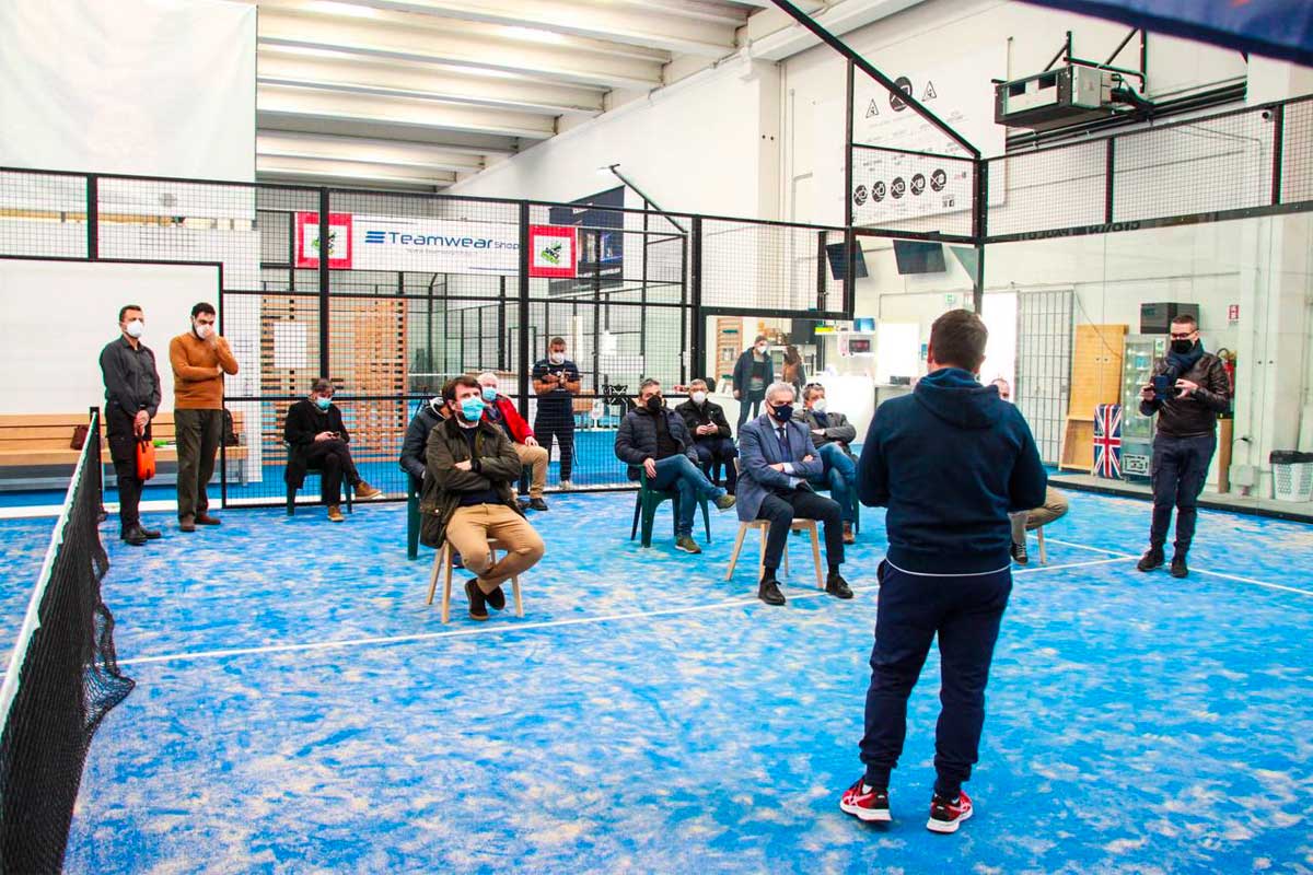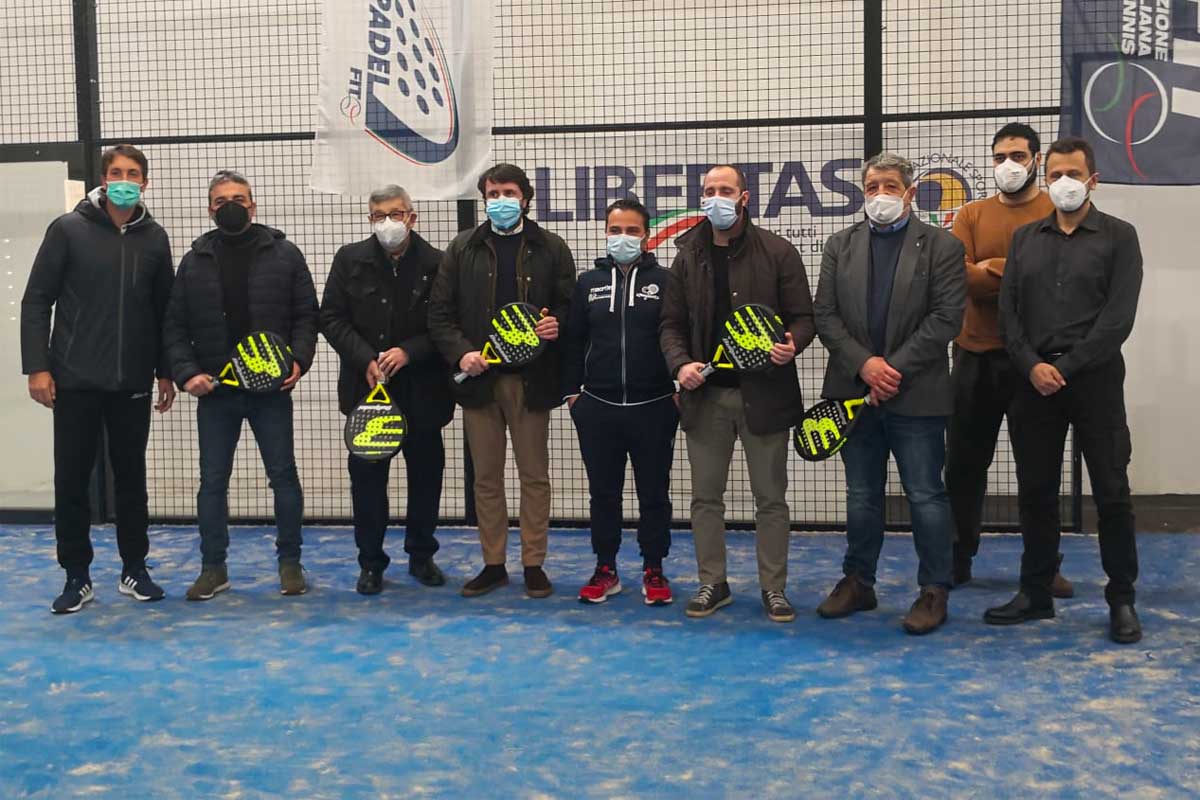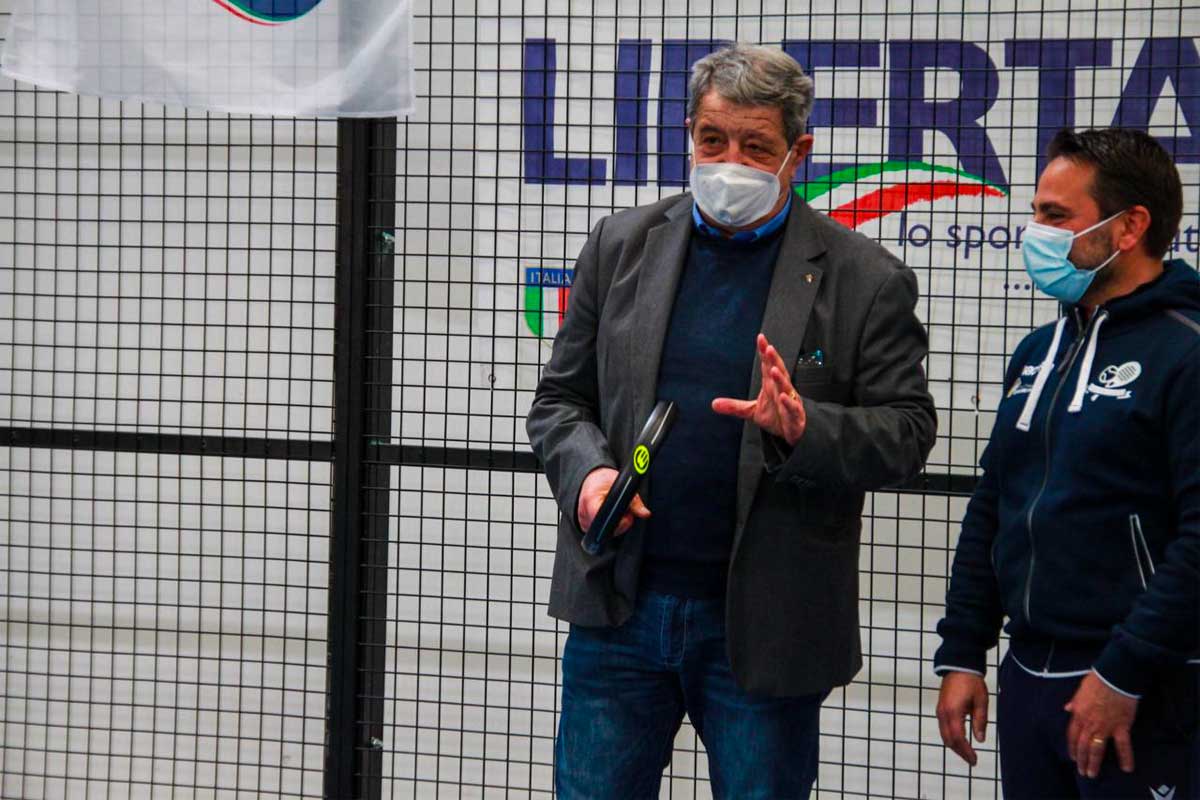Vogliamo ringraziare i due titolari del centro polispecialistico Giovanni Paolo primo, nostro main sponsor, per l’appoggio che ci stanno dando e per il defibrillatore donato alla scuola. Un grazie quindi a Massimo Tiberi e Giampaolo Zarletti. Un’organizzazione così strutturata si trova in grandi società grazie al supporto di veri professionisti e noi abbiamo voluto ricreare un ambiente scuola organizzato perfettamente. Il presidente Marcucci ringrazia le autorità per la presenza e il sostegno e offre come ricordo una racchetta da padel strumento necessario per svolgere l’attività sportiva”.
