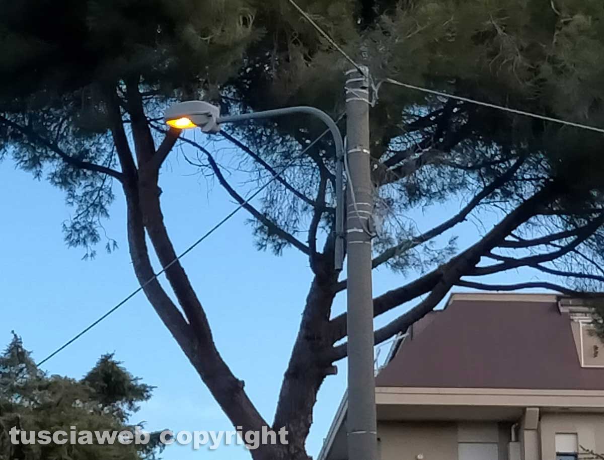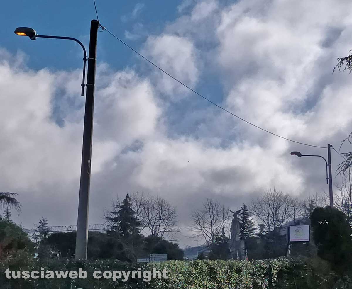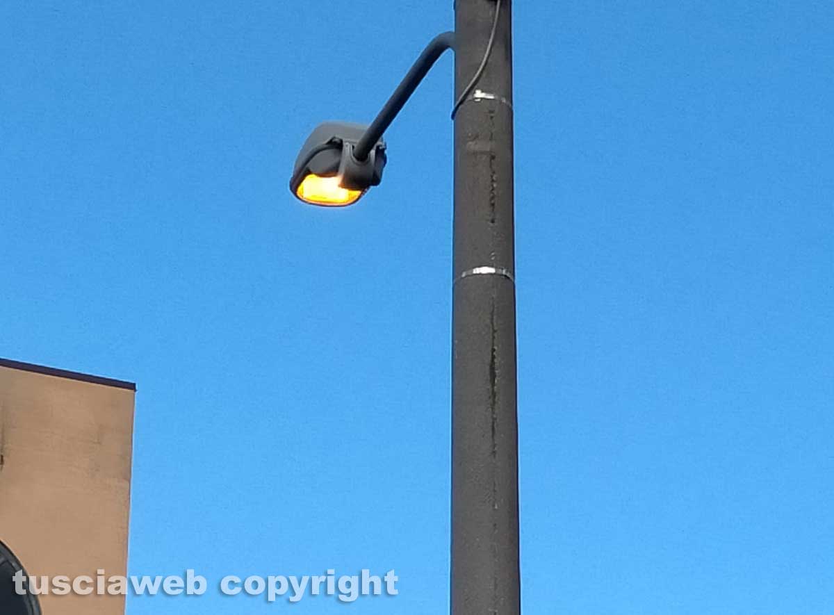 Viterbo - Lampioni accesi in pieno giorno in via Santa Maria in Gradi