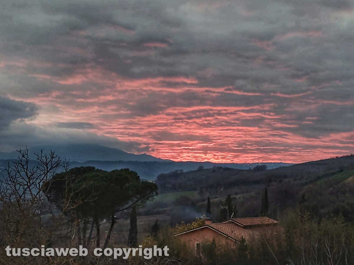Viterbo – Sfumature rosa di un tramonto. Lo scatto di Assunta Ricci.