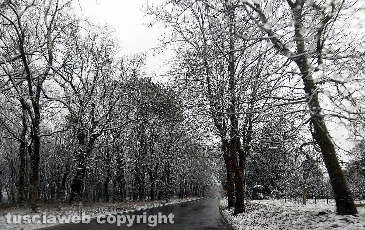 Le strade della Tuscia si stanno imbiancando. Come era previsto in diverse zone della provincia e in diversi paesi sta candendo la neve che ha iniziato a imbiancare il terreno.