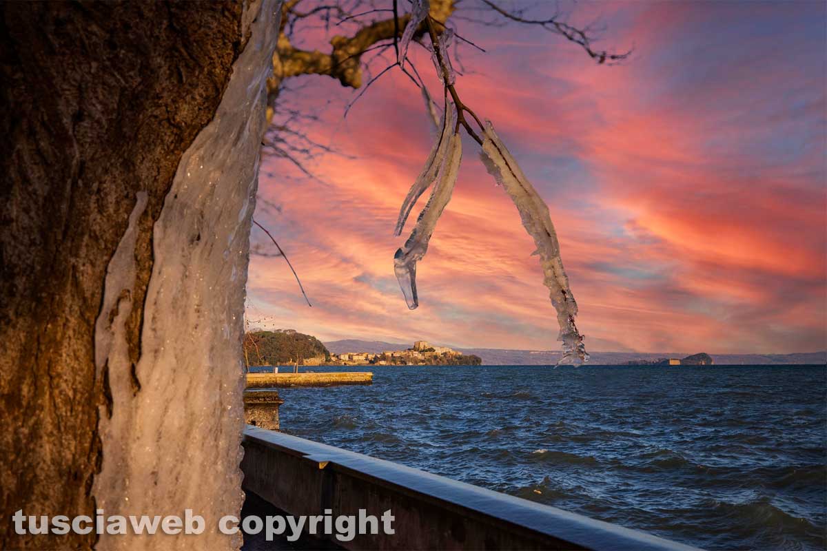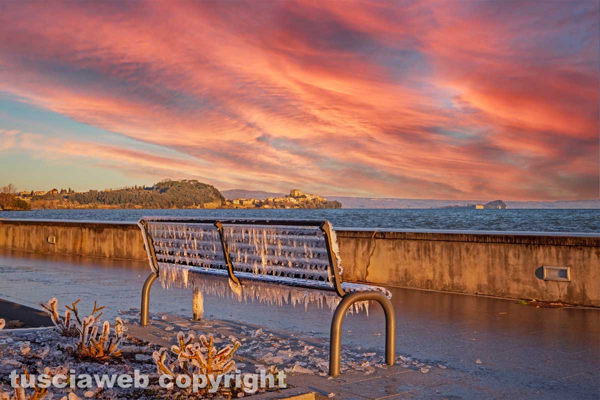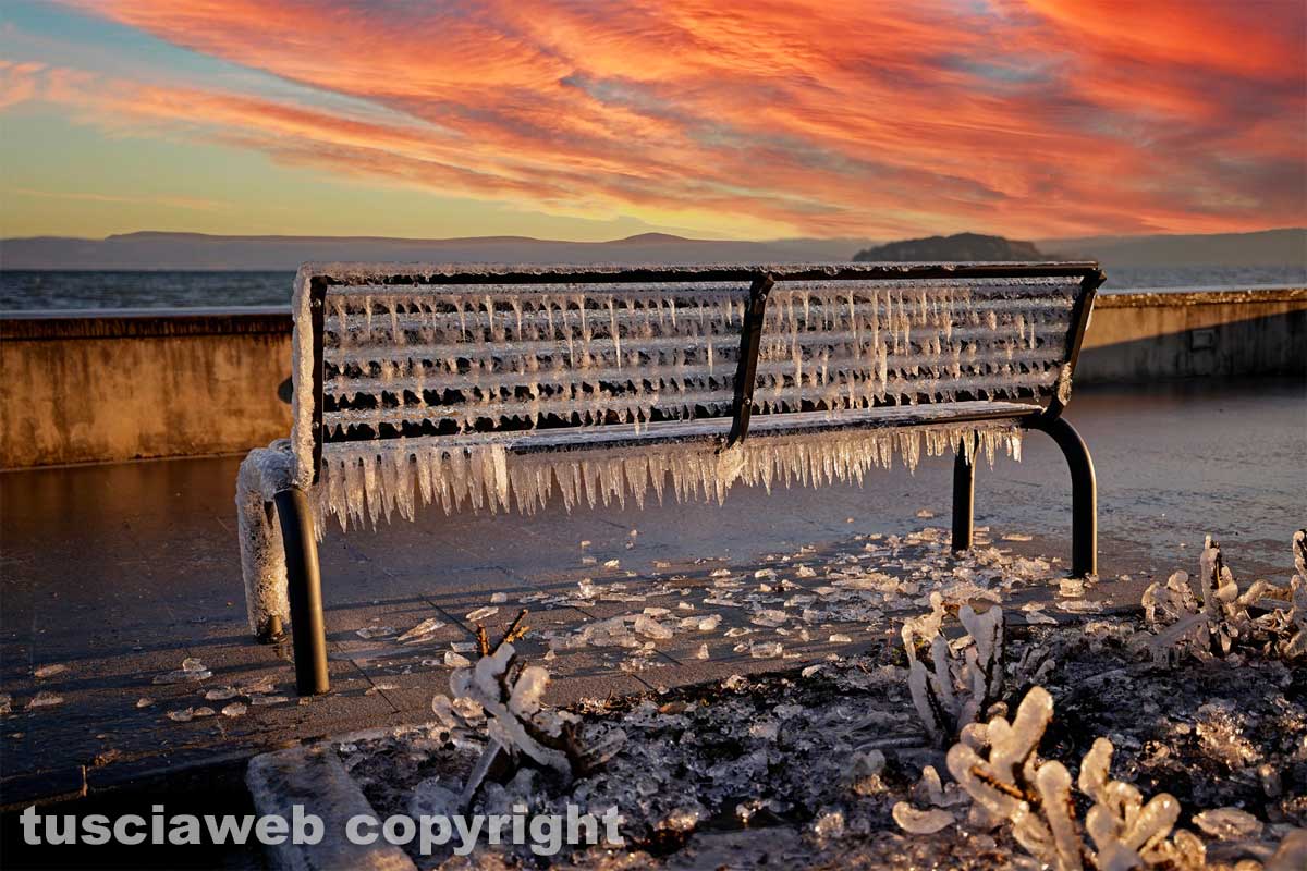 Marta – Riceviamo e pubblichiamo – Panchina ghiacciata al tramonto.