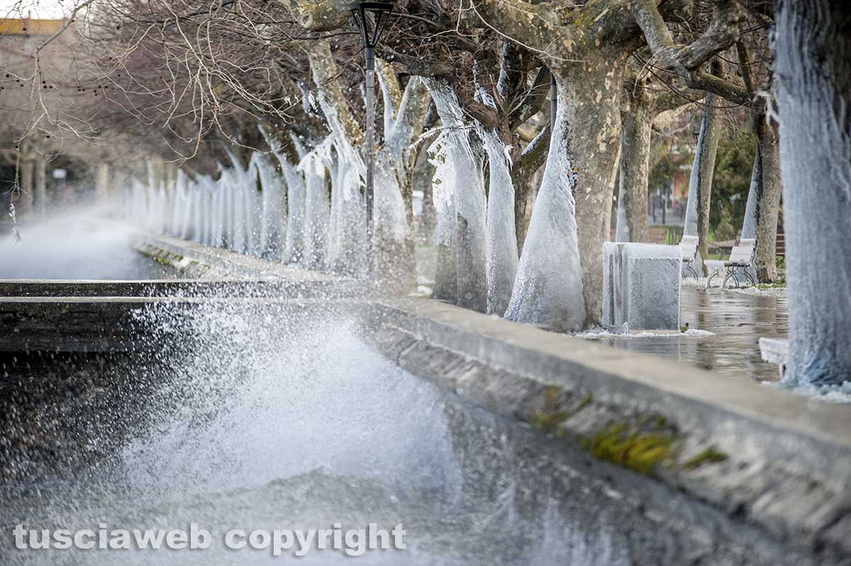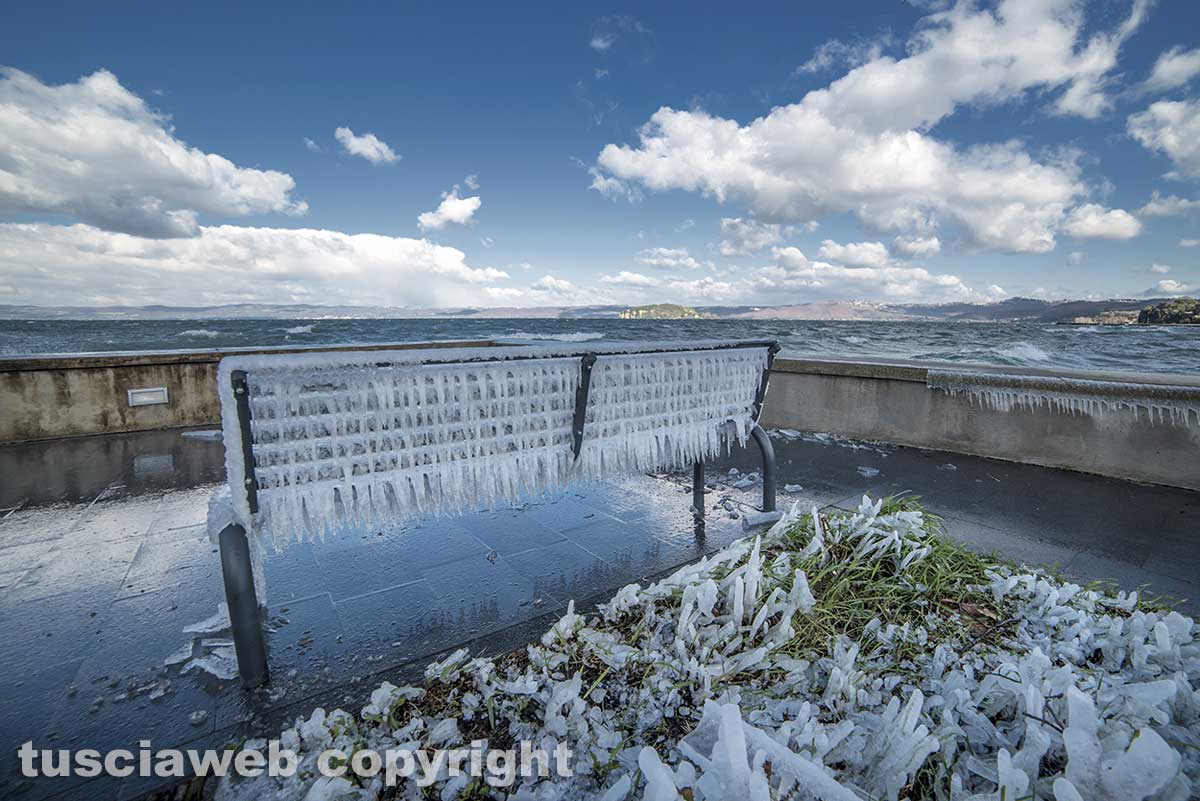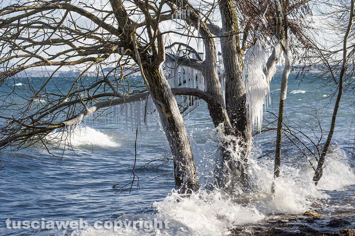 Marta – Freddo e gelo, un connubio razionale unita alla tramontana che soffia sul lago di Bolsena non fa che accrescere le sculture di ghiaccio nell’approdo del borgo di Marta.