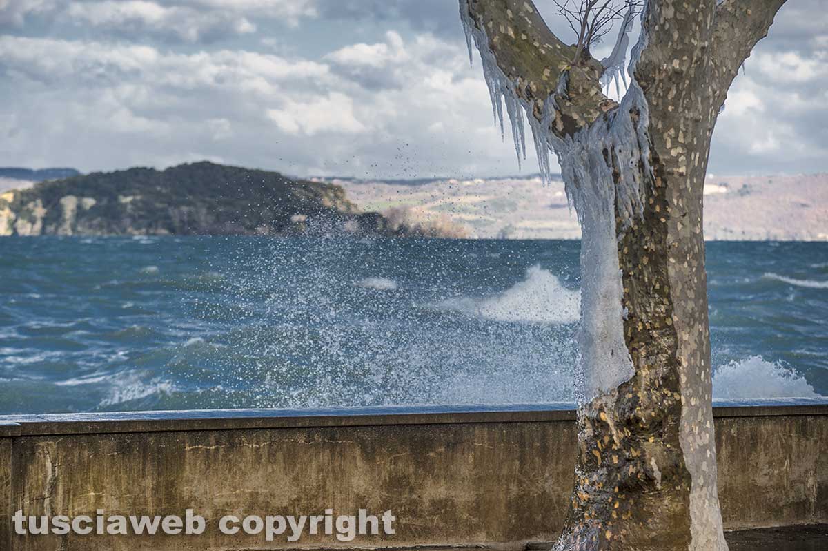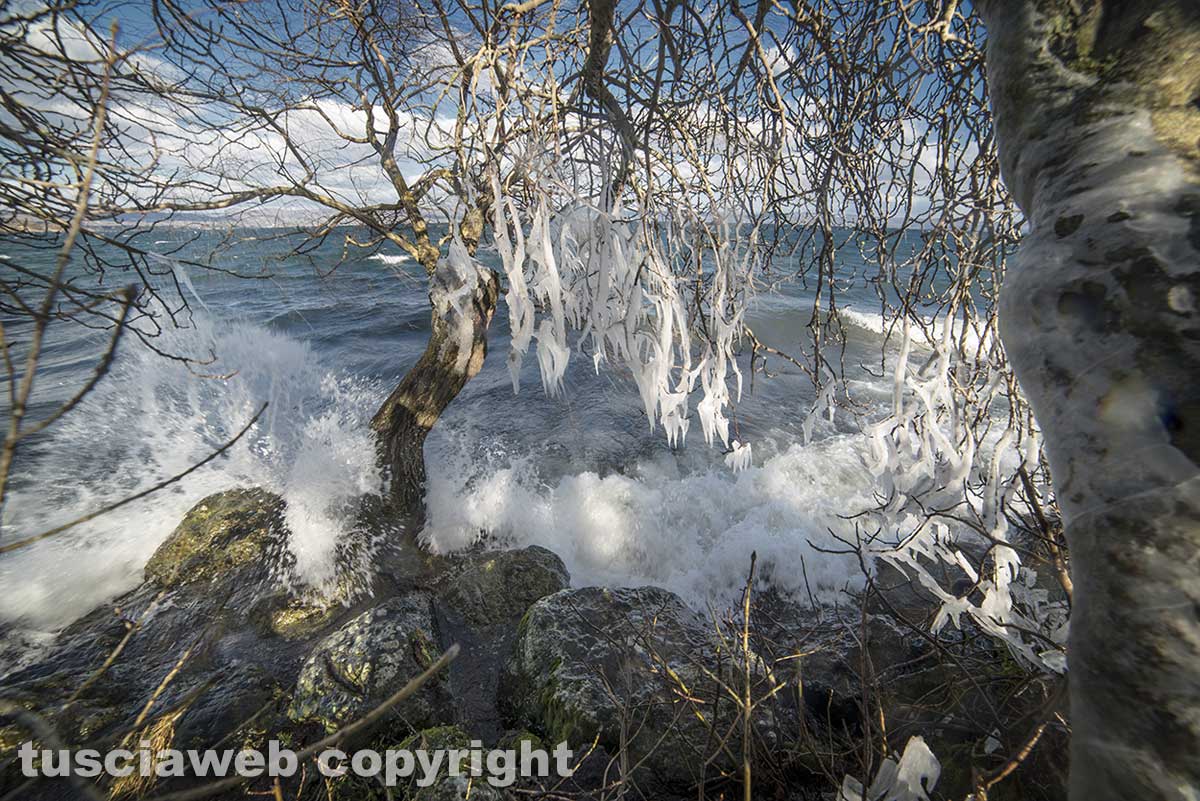 Il lungolago di Marta rimane quello più gettonato dai fotografi e per i selfie sul posto. Molto belle anche le sculture che il forte vento e le temperature basse di questi giorni hanno formato nella costa più selvaggia di Gradoli.