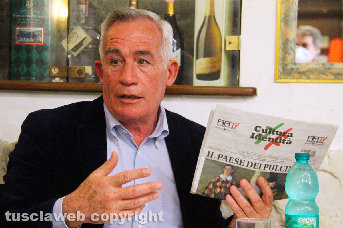 Viterbo – “E’ in fase di costruzione il circolo cittadino di Cultura e identità”. La notizia è questa. A darla, questa mattina durante una conferenza stampa al Bar centrale di piazza del comune a Viterbo, è Umberto Ciucciarelli, uno dei leader dell’associazione Cultura e Identità che oggi ha presentato un manifesto e un’iniziativa sul patrimonio culturale minore. Al tavolo, assieme a Ciucciarelli, anche il generale Paolo Capitini ed Emanuele Ricucci. Fanno parte dell’associazione pure Silvano Olmi e il giornalista Giovanni Masotti.