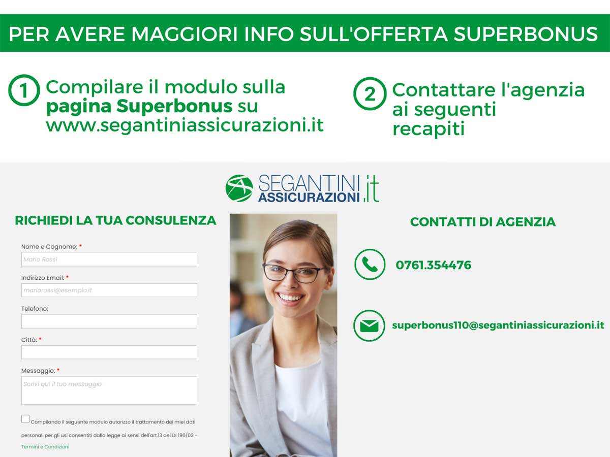 – contattare il numero 0761.354476 o inviare email a superbonus110@segantiniassicurazioni.it