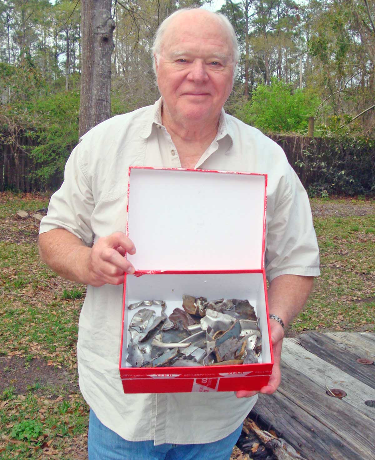 Uno dei figli del pilota Walter Johnson con il pacchetto con i frammenti dell’A-36
