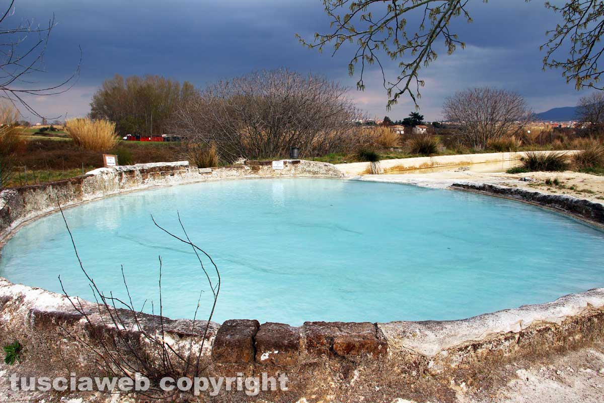 “Le due vasche per la balneazione terapeutica – prosegue il pannello turistico all’ingresso – sono state realizzate di recente in corrispondenza di antiche pozze alimentate da cavallette scavate nel travertino che si dipartono dalla sorgente termale. L’acqua sgorga a una temperatura di circa 58° C e raggiunge la prima vasca a una temperatura variabile tra 25 e 40° C in base alla stagione”.