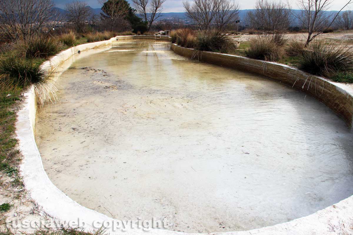 All’interno del perimetro del Bullicame, dove al centro affiora la callara, ci sono anche specie vegetali rare e collezioni botaniche. Aiuole oggi quasi irriconoscibili, così come il piccolo stagno realizzato per la tutela del rospo smeraldino. Mancano pure un paio di pannelli. Altri sono arrugginiti. Però è tornata l’acqua e la cosa non è di poco conto, merito di chi fino in fondo c’ha creduto e un possibilità in più per il futuro del territorio che sarà duro.
