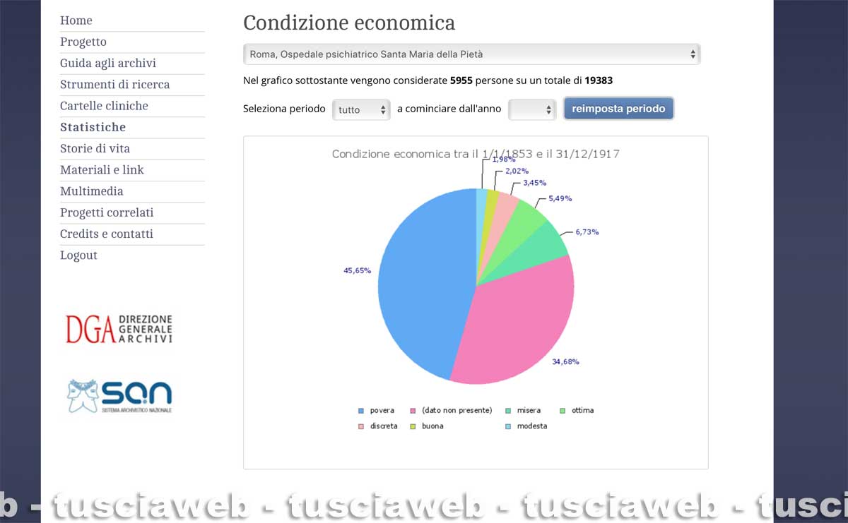 Viterbo – A.F. aveva quattro figli, era vedovo ed era povero. A.F. era nato in qualche paese della provincia di Viterbo nel 1828 e nel 1890 venne ricoverato nel manicomio di Santa Maria della Pietà a Roma per “monomania suicida e idromania”. Diagnosi, demenza. A.F. uscì dal manicomio pochi mesi dopo. Da morto. Per “un’enterocolite ulcerosa”. La sua è soltanto una delle 1964 storie di viterbesi rinchiusi nei manicomi italiani tra la fine dell’ottocento e i primi 40 anni del secolo scorso e conservate oggi nel sito on line del ministero per i beni e le attività culturali “Carte da legare”.