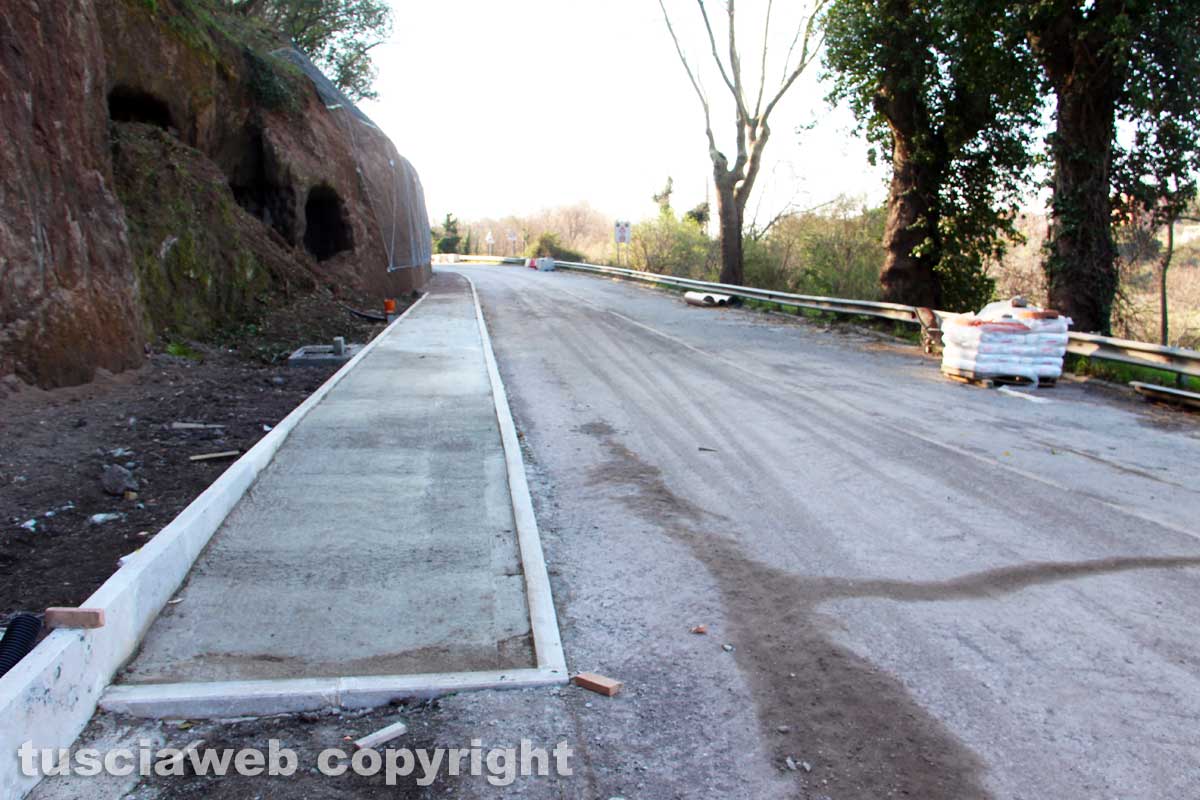 Il sindaco Arena fa riferimento inoltre alla valorizzazione di alcune testimonianze etrusche. “Ne avevo già parlato nei giorni scorsi. Nella zona, dopo tanto tempo, sono tornati alla luce dei colombari etruschi, fino ad oggi ricoperti da erbacce e vegetazione. Andremo a valorizzare queste testimonianze del nostro passato attraverso dei punti luce. Non ci limiteremo a questo primo stralcio di lavori – ha aggiunto il sindaco Arena -. Ci siamo dovuti fermare a questo primo tratto di marciapiede, ovvero prima dell’imbocco della strada di accesso alla casa cantoniera, in quanto dovrà essere necessariamente messa in sicurezza la restante parte tufacea. È nostra intenzione far partire quanto prima gli interventi successivi che riguarderanno nuovi tratti di camminamento e la sistemazione di quelli già esistenti, fino ad arrivare all’ingresso della città”.
