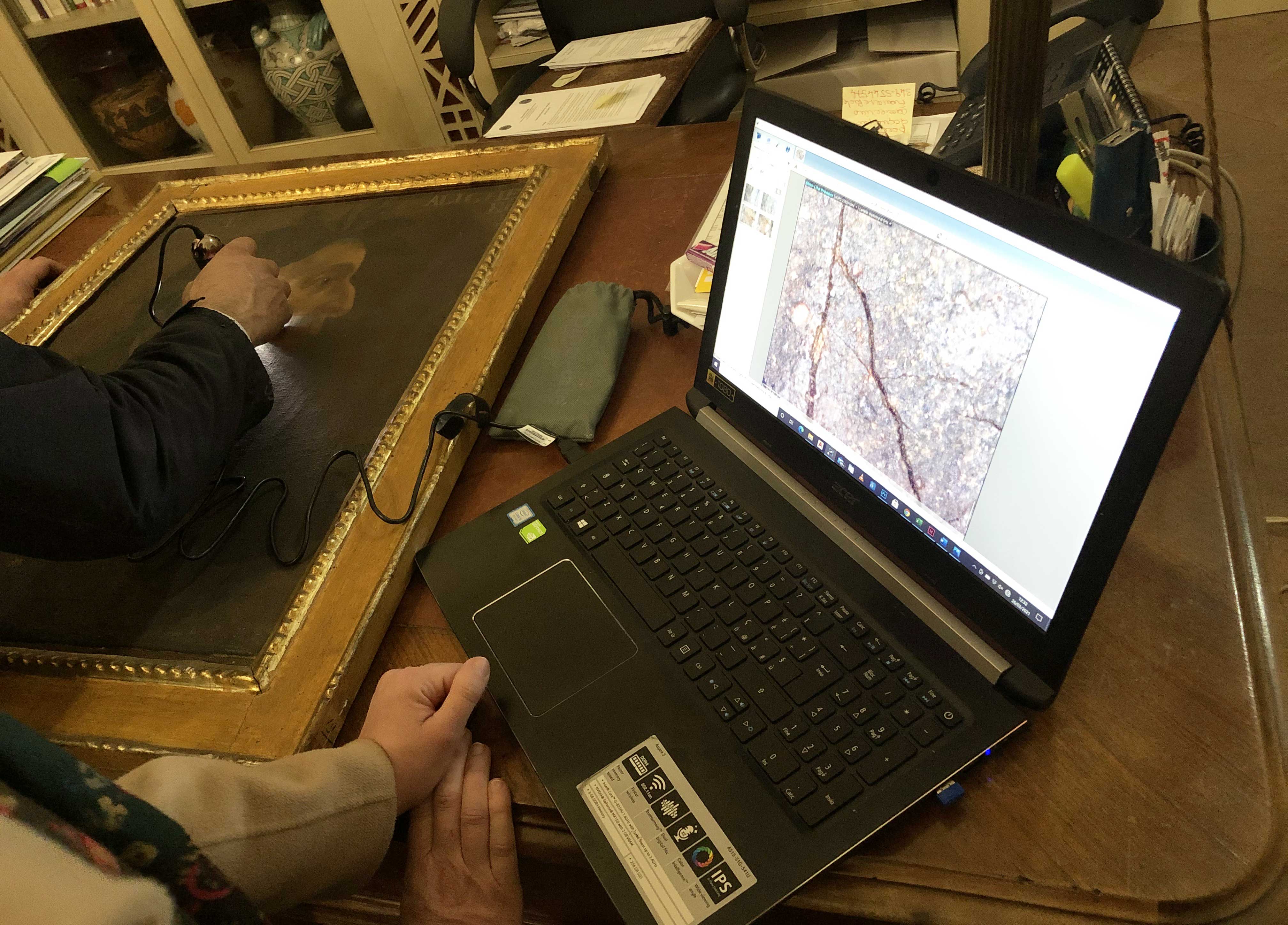 Orvieto – Riceviamo e pubblichiamo – L’inedito quadro che raffigura Dante Alighieri con la barba, custodito nell’ufficio del sindaco del comune di Orvieto, è stato sottoposto nella giornata di venerdì a un primo esame diagnostico da parte del team di esperti del Consorzio Pragma. I restauratori Valentina Romé, Davide Rigaglia e Massimiliano Massera hanno eseguito sul dipinto un’analisi all’ultravioletto Uv e con l’ausilio di un microscopio digitale a fibra ottica.