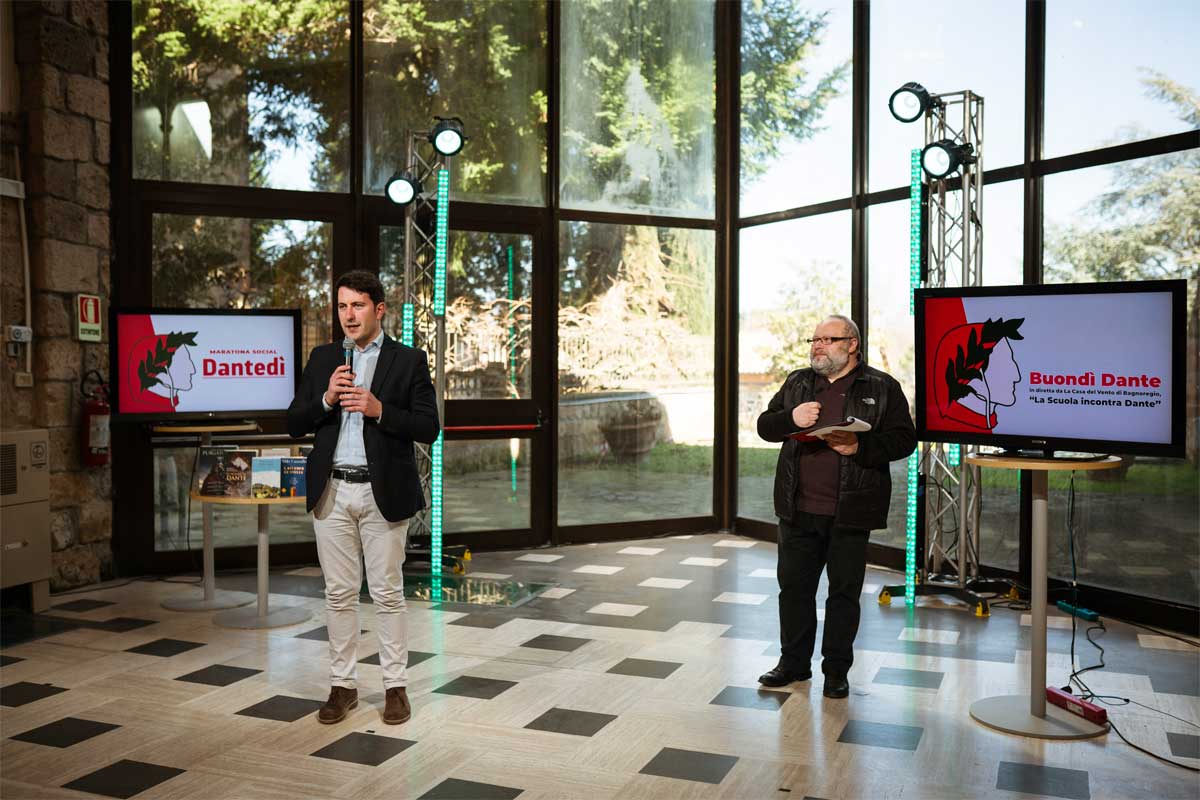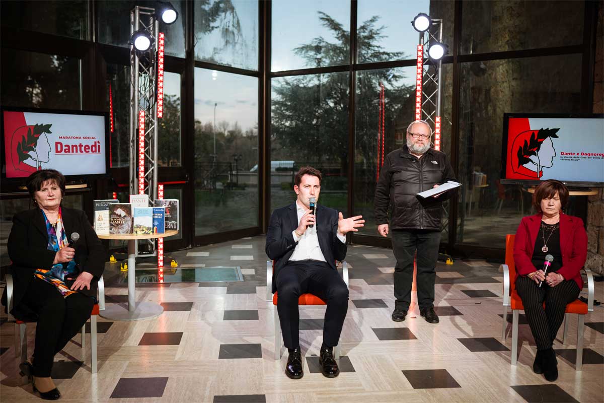 Dalle terzine lette da mostri sacri come Vittorio Gassman e Carmelo Bene, ai volti noti dell’oggi, “Gli amici di Dante” come Juppiter li ha chiamati, che al Sommo poeta hanno dedicato studi, libri, fatica: Giulio Ferroni, Aldo Cazzullo, Eraldo Affinati, Pif sono intervenuti in videoconferenza per un saluto al popolo di Facebook e la promessa di presentare i loro lavori su Dante a Bagnoregio, a distanza o in presenza, se il virus permetterà.