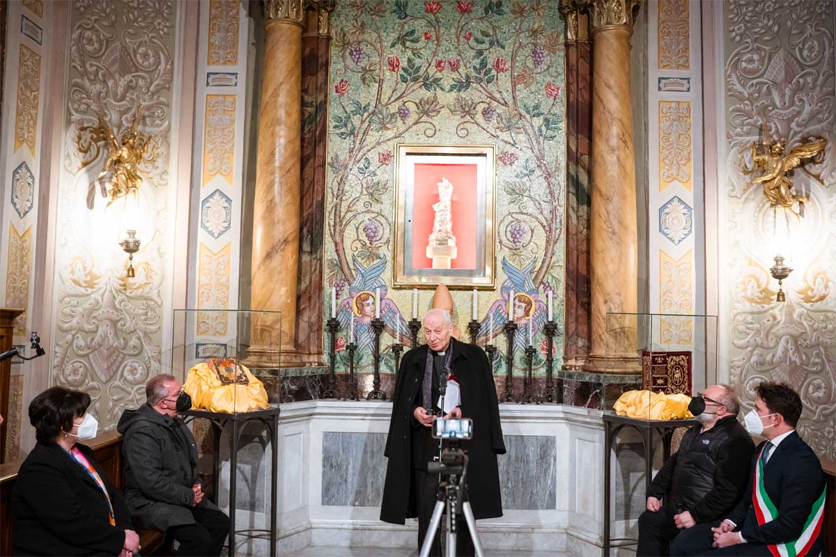 Il vescovo Lino Fumagalli ha benedetto la comunità di Bagnoregio accanto alla Bibbia di San Bonaventura, patrono della città: da Viterbo, il volume è tornato a Bagnoregio, dove resterà esposto nella cattedrale fino al 14 settembre, quando ricorrerà precisamente il settimo centenario dalla morte di Dante. “Viviamo tempi difficili in cui non ci si salva da soli – ha detto il vescovo Fumagalli –. Non ci scoraggiamo: insieme supereremo le difficoltà che verranno“.