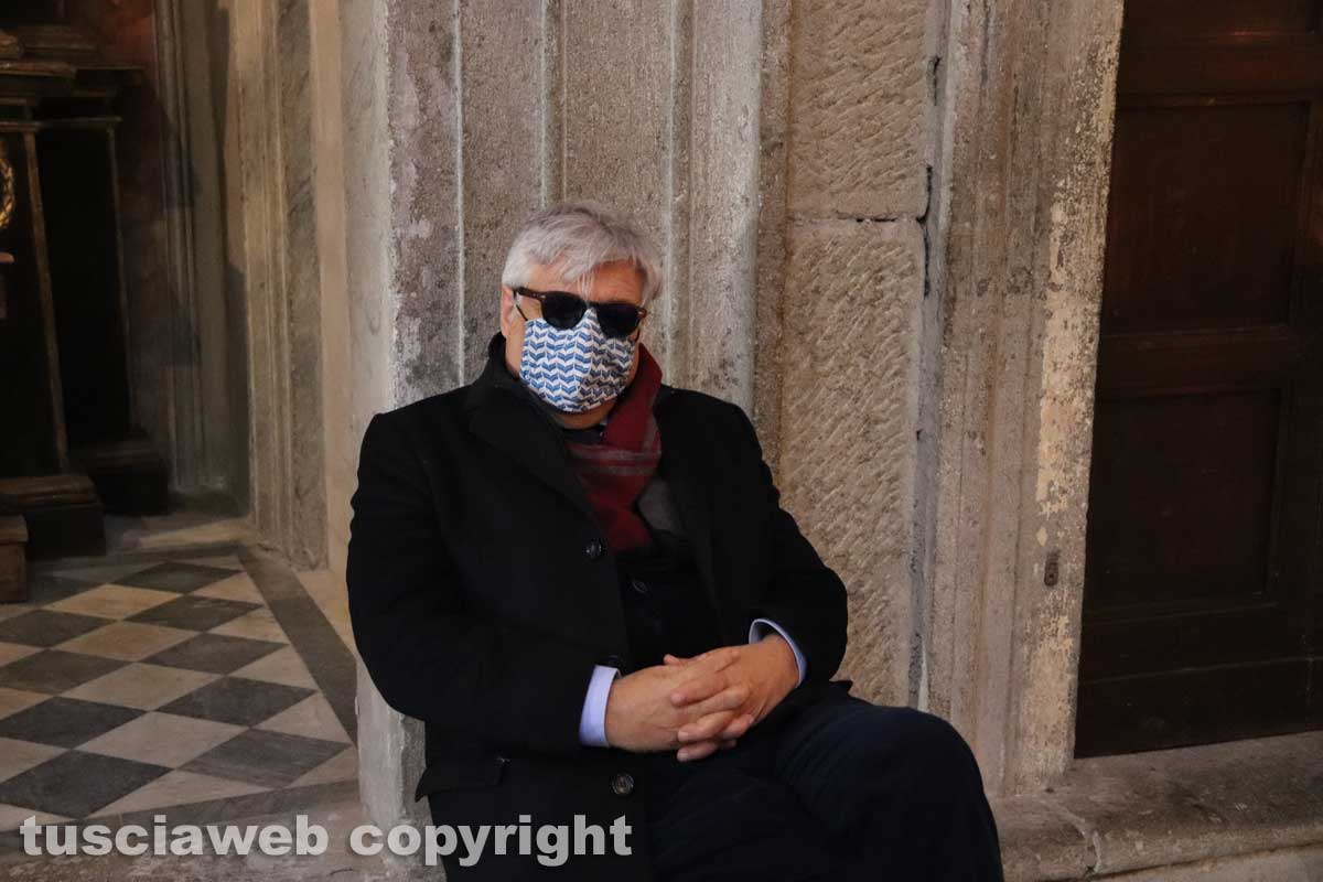 Una celebrazione nel rispetto delle norme anti-Covid, con i fedeli distanziati, naso e bocche coperte dalla mascherina. L’attore Piermaria Cecchini ha declamato una delle letture. Per il comune di Viterbo era presente l’assessore all’Agricoltura Ludovica Salcini.