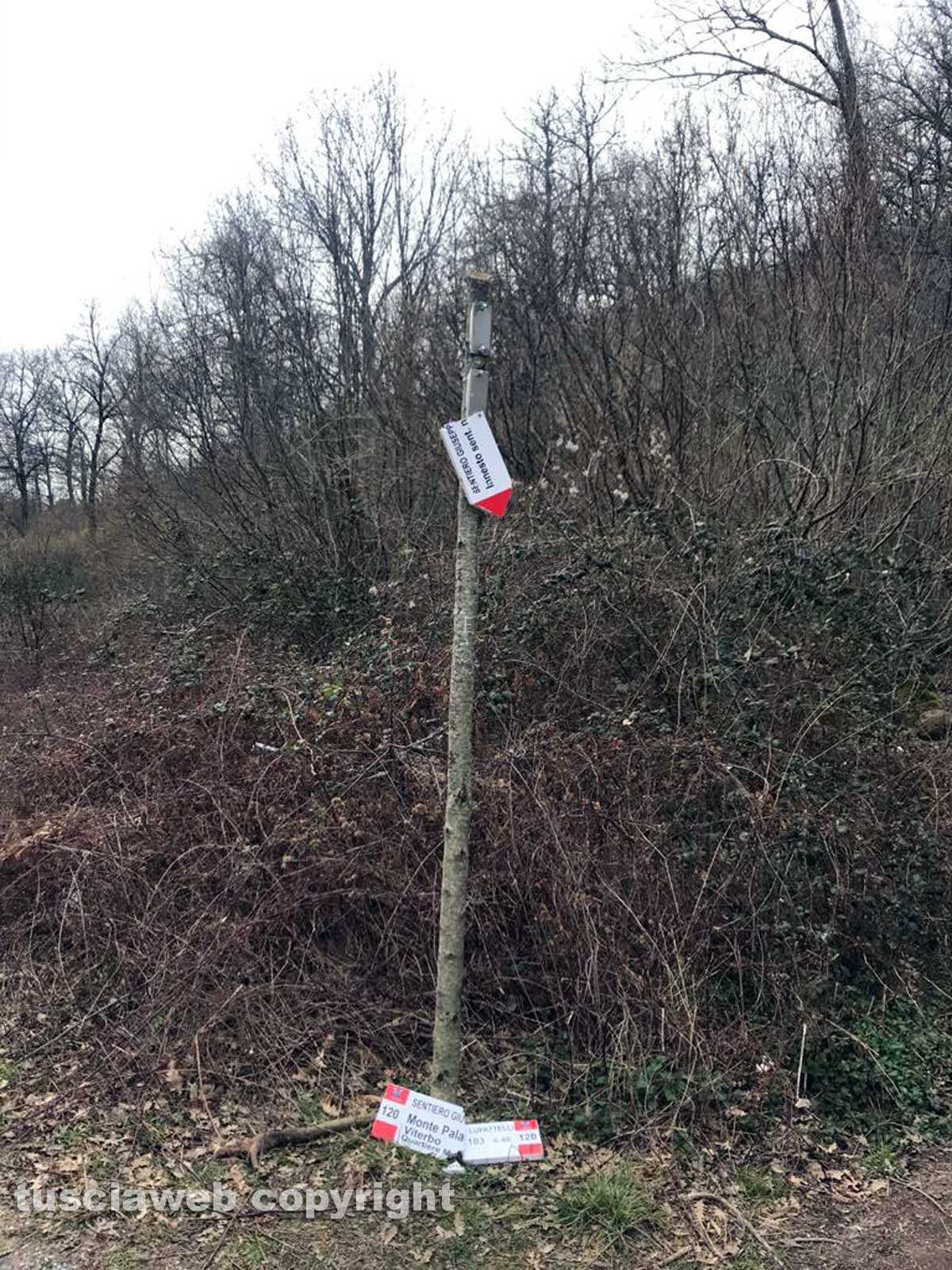 Viterbo – Riceviamo e pubblichiamo – Oggi (ieri, ndr) salendo alla Palanzana, ho visto che qualche incivile e maleducato ha distrutto la segnaletica dei sentieri del Cai.