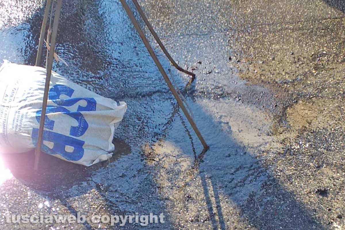 Viterbo – Riceviamo e pubblichiamo – Voglio segnalare da due giorni, in via Santa Maria della Grotticella, la presenza di due buche con perdite di acqua.