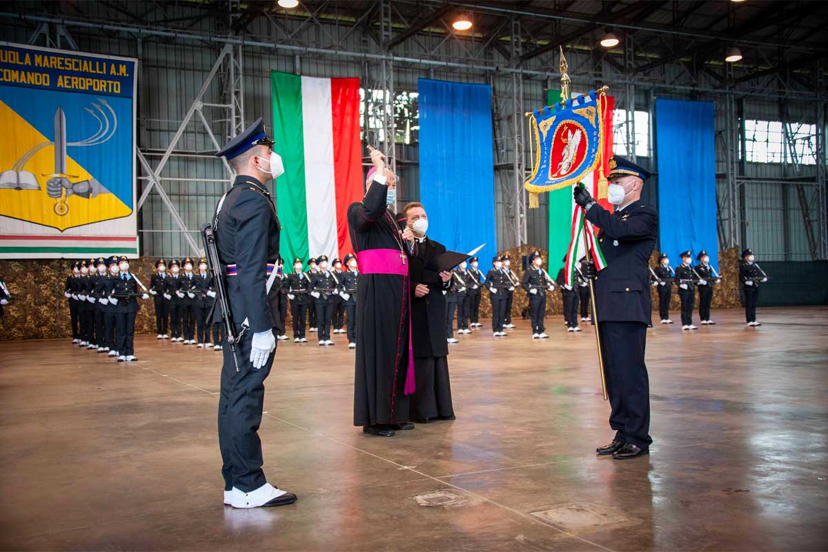 La cerimonia svoltasi nel rispetto delle misure di contenimento dell’emergenza Covid-19 è stata aperta dall’intervento del comandante della Scuola marescialli e dell’Aeroporto di Viterbo, Colonnello Sandro Cascino, il quale dopo aver salutato i presenti si è rivolto ai familiari dei giurandi, costretti purtroppo a seguire l’evento da casa in collegamento streaming a causa delle procedure di prevenzione in atto.