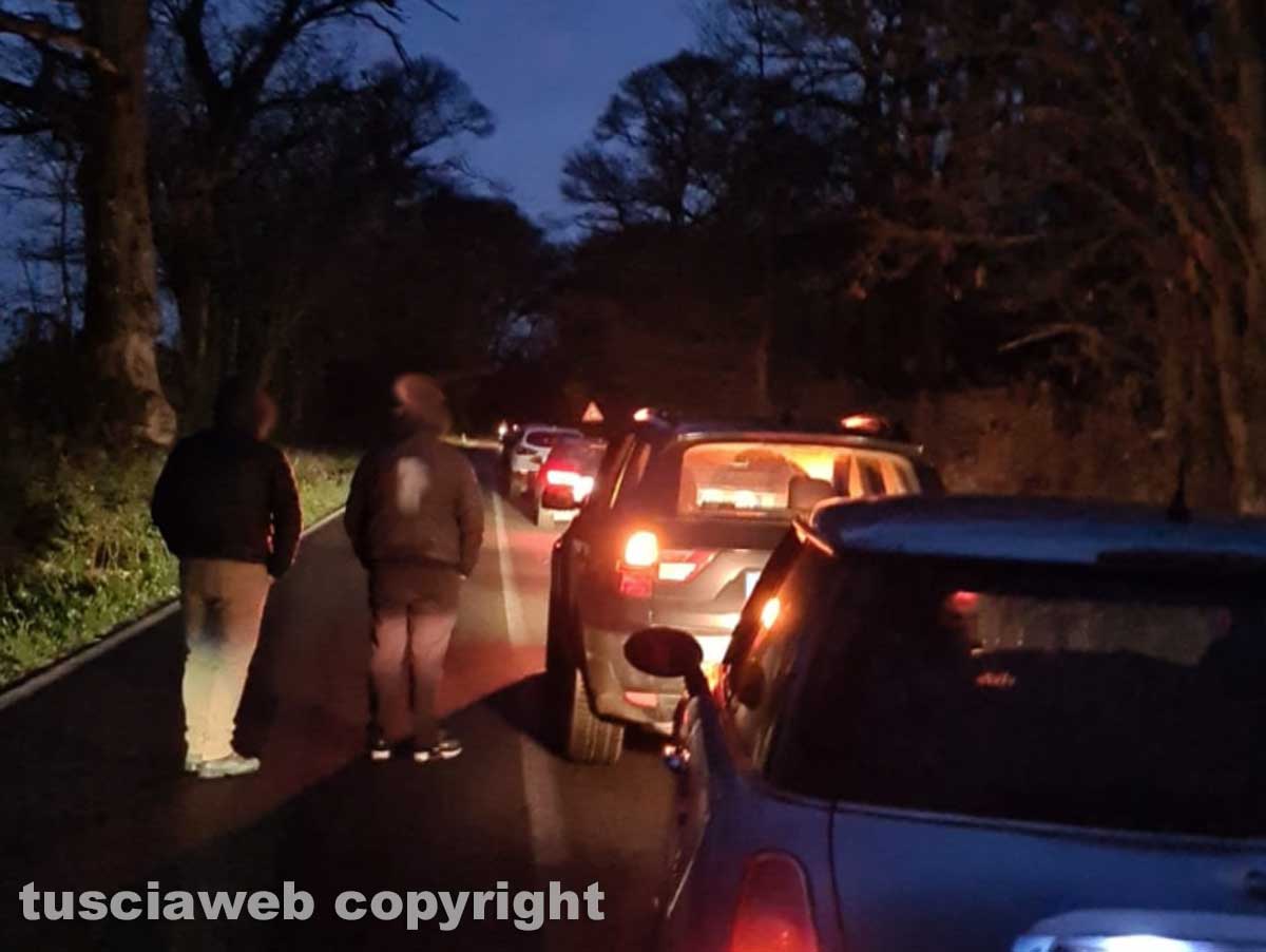 Auto capotta sui Cimini – La fila di macchine