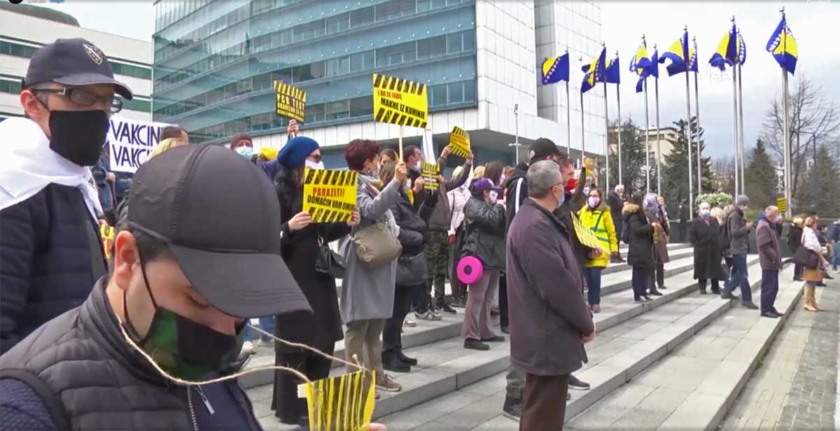 Molti manifestanti oggi stanno sfilando nelle strade di Sarajevo mostrando cartelloni e gridando slogan di protesta contro la gestione politica della pandemia nella nazione. Uno degli slogan più popolari è “Lotta per la vita”, con cui vengono chieste le dimissioni dei vertici sanitari bosniaci. Anche nelle scorse settimane proteste simili hanno sfilato per la capitale e per le maghggiori città.