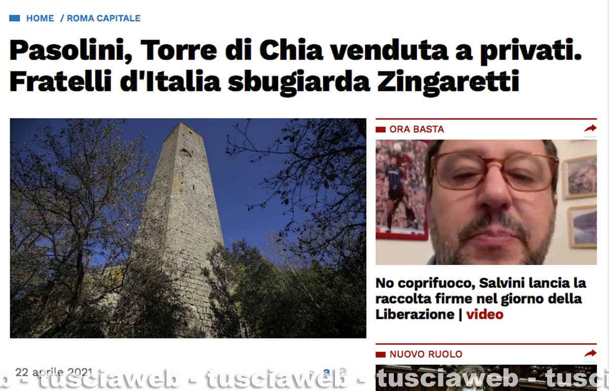- "Pasolini ha amato Viterbo e la Tuscia, il Mibact acquisti la Torre di Chia"