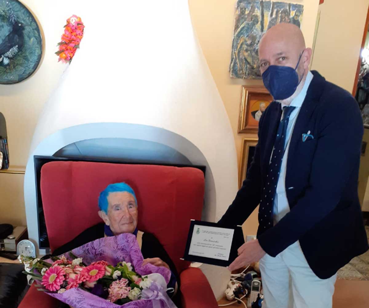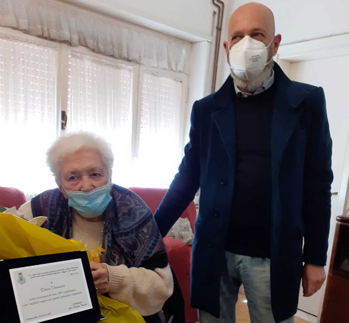 Civitavecchia – Riceviamo e pubblichiamo – Doppio momento di gioia per la città negli ultimi giorni. Il sindaco Ernesto Tedesco ha potuto portare le felicitazioni di tutta l’amministrazione a due civitavecchiesi che hanno tagliato il traguardo dei 100 anni.