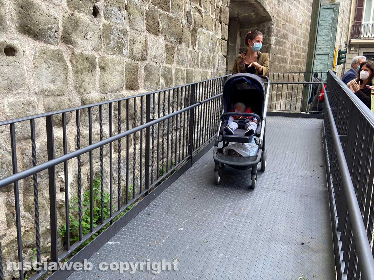 Viterbo – “Un cambio di rotta, la pedana per disabili e carrozzine inaugurata questa mattina è soltanto un inizio”. Il sindaco di Viterbo Giovanni Arena, gli assessori Laura Allegrini e Antonella Sberna, rispettivamente lavori pubblici e servizi sociali, e il consigliere Antonio Scardozzi, questa mattina a piazza San Sisto.