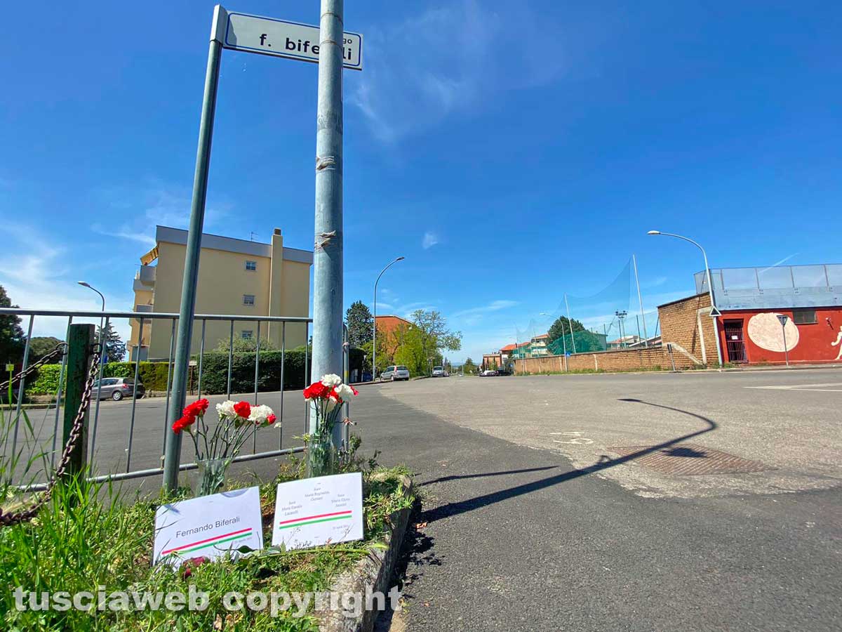 Ferdinando Biferali era nato a Civitavecchia nel 1901. Barbiere, comunista, ardito del popolo. Condannato e confinato durante il ventennio, divenne poi commissario politico a Viterbo della banda partigiana che portava il suo nome. Caduto sotto i bombardamenti alleati del 27 maggio 1944, è medaglia d’argento al valore militare alla memoria. Biferali morì nei pressi del carcere di Santa Maria in Gradi, oggi università degli studi della Tuscia, dove c’erano diversi prigionieri politici appartenenti al partito comunista e dove, tra il dicembre del 1943 e il gennaio del ’44, transitarono gli ebrei viterbesi diretti verso i campi di sterminio nazisti. Biferali, con l’aiuto di alcuni militanti mandati dal Pci romano, mise in piedi una serie di cellule partigiane sia a Viterbo che in provincia, con diversi atti di sabotaggio ai danni di fascisti e tedeschi.
