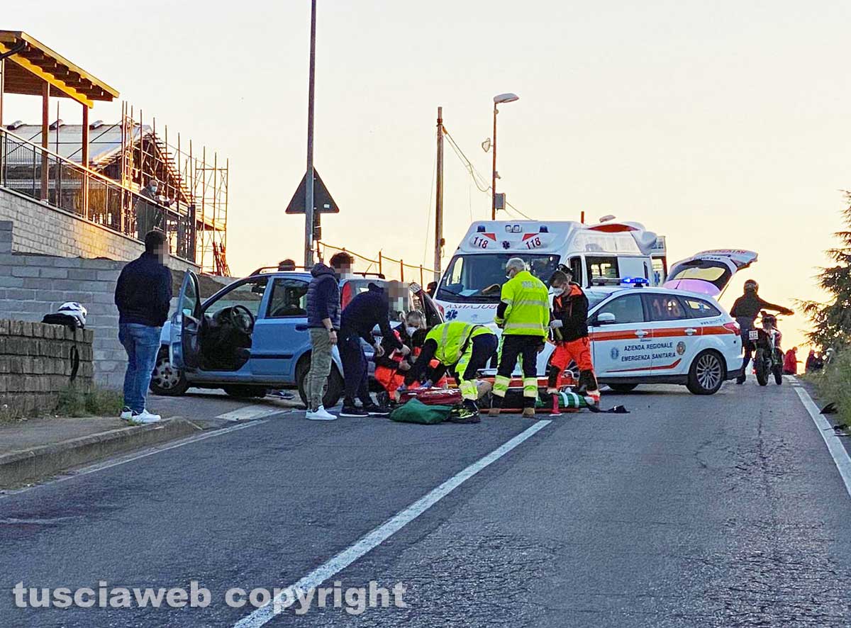 L’incidente è avvenuto poco prima delle 20 nel tratto di strada che collega la frazione vitorchianese di Paparano a Viterbo. Nello scontro sono rimasti coinvolti un Fiat Panda e un motorino.