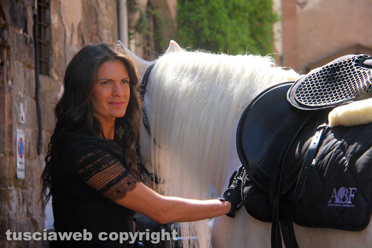 Ieri Bocelli per le vie del centro, a cavallo, tra San Pellegrino e Porta San Pietro. Domenica stava invece a San Martino. Una tre giorni viterbese, accolto dal sindaco Giovanni Arena e dall’assessora Alessia Mancini, anticipata dalla cittadinanza onoraria che gli è stata conferita sabato mattina a Sutri, nel giardino di Palazzo Doebbing. Il vicesindaco della città, Mauro De Lillo, come lui stesso ha detto al microfono, l’ha letteralmente intercettato lungo la Cassia, deviandolo su Sutri per l’inaugurazione della mostra del sindaco Vittorio Sgarbi. Luci e ombre, da Mattia Petri a Depero.